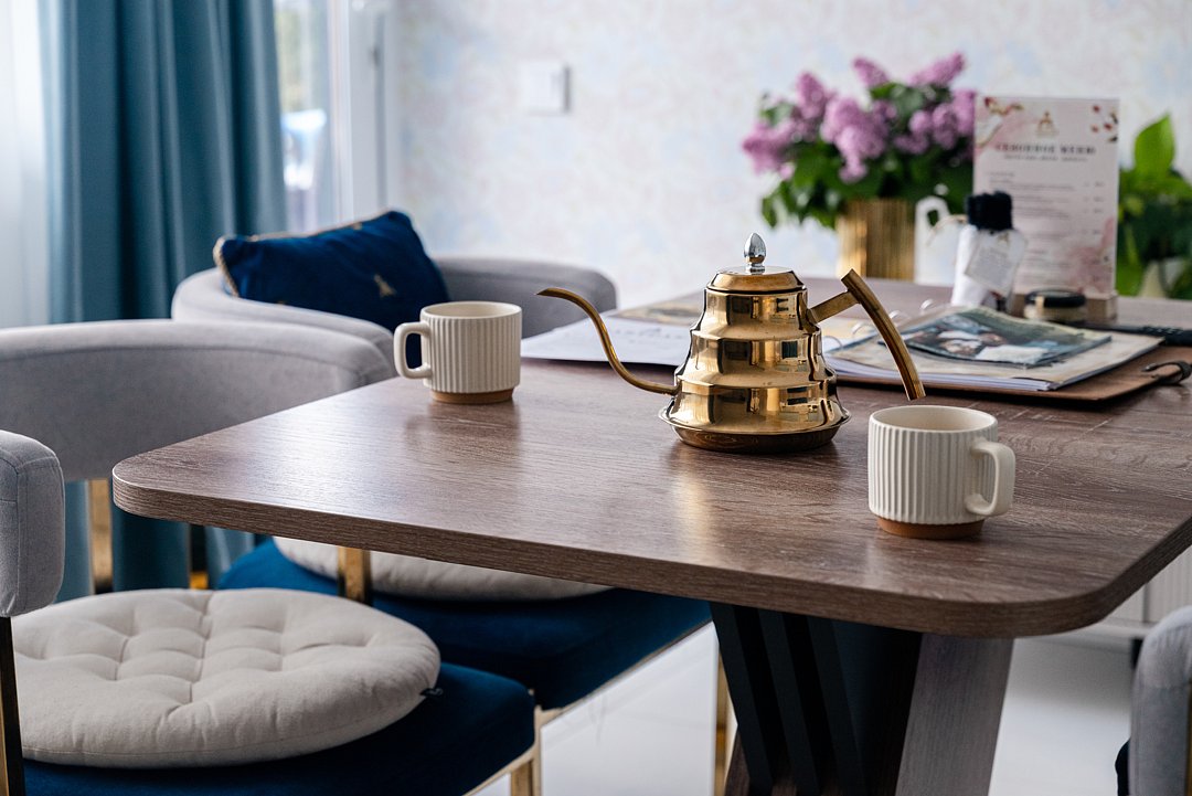 Интерьер оформлен в теплых осенних тонах, создающих ощущение безмятежности и внутренней гармонии. Вне зависимости от компании, время, проведенное здесь, оставит яркие воспоминания.
