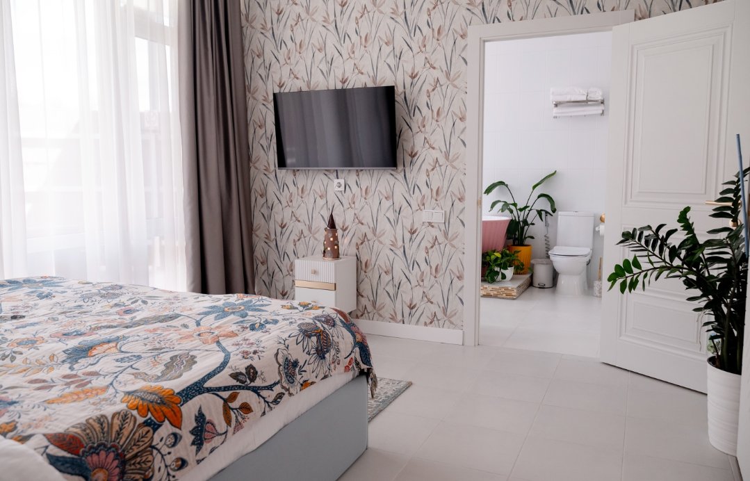 Для максимального комфорта в вилле есть все необходимое: удобная кровать и диван с приятным на ощупь постельным бельем, современный широкоэкранный телевизор с доступом к "Кинопоиску", система кондиционирования для поддержания комфортной температуры, сейф, а также кухонное оборудование. Каждая деталь интерьера, начиная от элегантных светильников и заканчивая изысканными элементами декора, акцентирует уникальность и стиль.