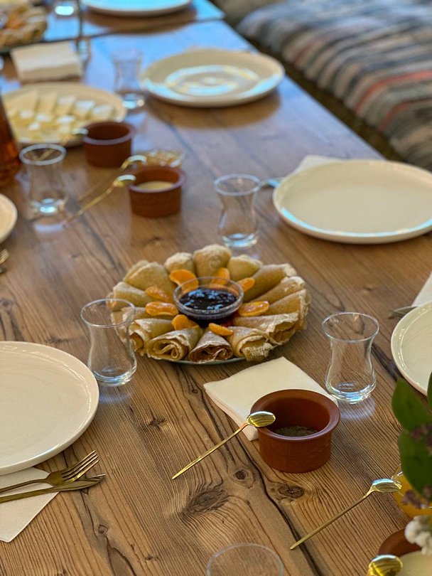 Здесь Вас ждут только свежие, фермерские продукты, выращенные с любовью и заботой о природе и Вашем здоровье. Блюда ресторана — это настоящая симфония кавказских традиций, созданная из натуральных ингредиентов: ароматный высокогорный мёд, целебные травы, сочные овощи и фрукты — всё для того, чтобы порадовать Ваши чувства и напитать душу.