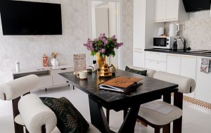 Изысканный вилла "Джуца ЛЮКС" – это островок уюта, включающий в себя спальню с повышенным комфортом и обширную гостиную, объединенную с кухонной зоной. В ванной комнате, оснащенной всем необходимым для полного расслабления, предусмотрен прямой выход на террасу. Приватный бассейн станет приятным бонусом к вашему отдыху.