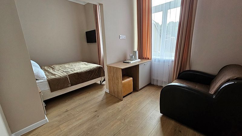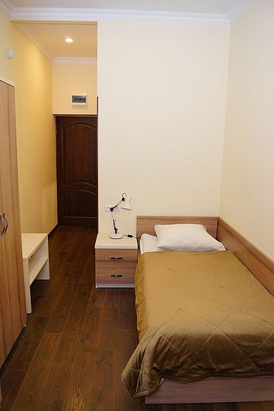 Стандартный одноместный однокомнатный номер с односпальной кроватью и всеми удобствами. Некоторые номера с балконом, уточняйте при бронировании.