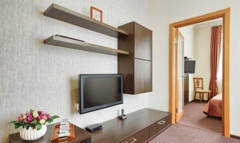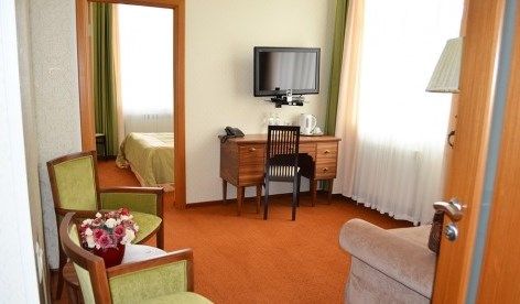 Благоустроенный двухкомнатный номер с гостиной и спальней, площадью более 30 кв.м. В каждой комнате для Вас телевизор с плоским экраном, в гостиной - раскладной диван, что позволяет проживание в номере до 4 человек. С балкона открывается живописный вид на зеленую зону отеля.Услуги и удобства