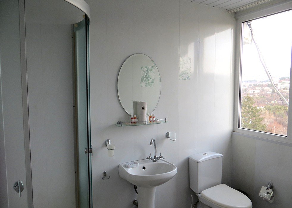 Четырехэтажный жилой корпус пансионата разместился на небольшой благоустроенной территории. Гостям предлагаются 22 номера Double и Twin, среди которых есть просторные номера, отлично подходящие для размещения семей. Везде имеется ванная комната с душем и набором косметических принадлежностей, телевизор, электрочайник, холодильник.