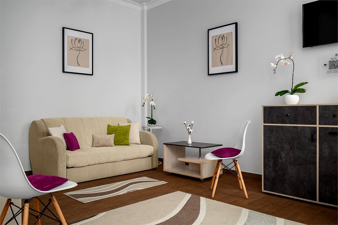 Двухкомнатные Апартаменты № 8 (корпус 4) - это апартаменты на 4-5 человек, площадью 73 м², располагающиеся на 2-ом этаже шестиэтажного дома в Курортной Зоне г. Ессентуки в нескольких шагах от санатория "Виктория" и парка Победы. Здесь есть всё необходимое для комфортного проживания: стильная мебель, двуспальная кровать, большой раскладной диван, раскладное кресло, современная бытовая техника и вся необходимая посуда, кондиционер в каждой комнате, стиральная и посудомоечная машина, Wi-Fi, Smart TV и онлайн-кинотеатры, постельное белье, полотенца, а также, разовые гигиенические и косметические принадлежности. По приезде Вам необходимо будет заплатить ТУРИСТИЧЕСКИЙ НАЛОГ (ТН) - это новый местный налог, который заменяет Курортный сбор. Туристический налог оплачивается только наличными во время заселения – одновременно с оплатой размещения. При заселении у Гостя должна быть произведена 100% оплата за весь период проживания. Также при заезде в качестве страхового депозита при заселении в Апартаменты необходимо внести денежные средства в размере от 5 000 рублей на случай порчи имущества или нарушения правил проживания в Апартаментах (например, шум, курение и т.д). Депозит возвращается при выезде, если правила проживания были полностью соблюдены. Депозит оплачивается только наличными средствами и взимается на усмотрение руководства.Услуги и удобства