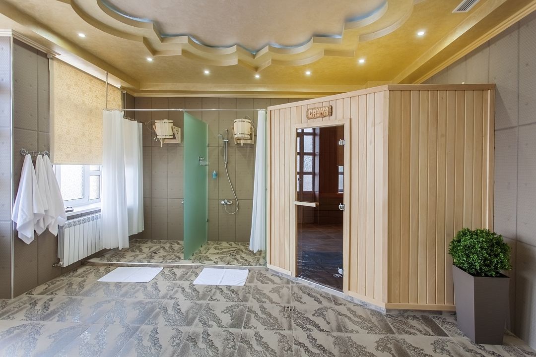 Инфраструктура: полотенца, обливное ведро, душ, халатыТемпература парения: 90–120 °C -