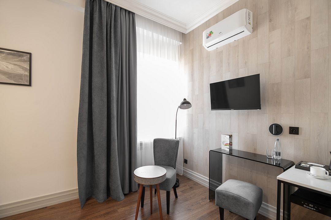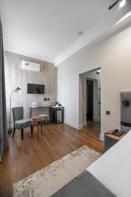 Обновленный номер «New Джуниор сюит» — это олицетворение современного стиля и комфорта. С первого взгляда он захватывает своим элегантным дизайном, воплощающим последние тенденции интерьерной моды.