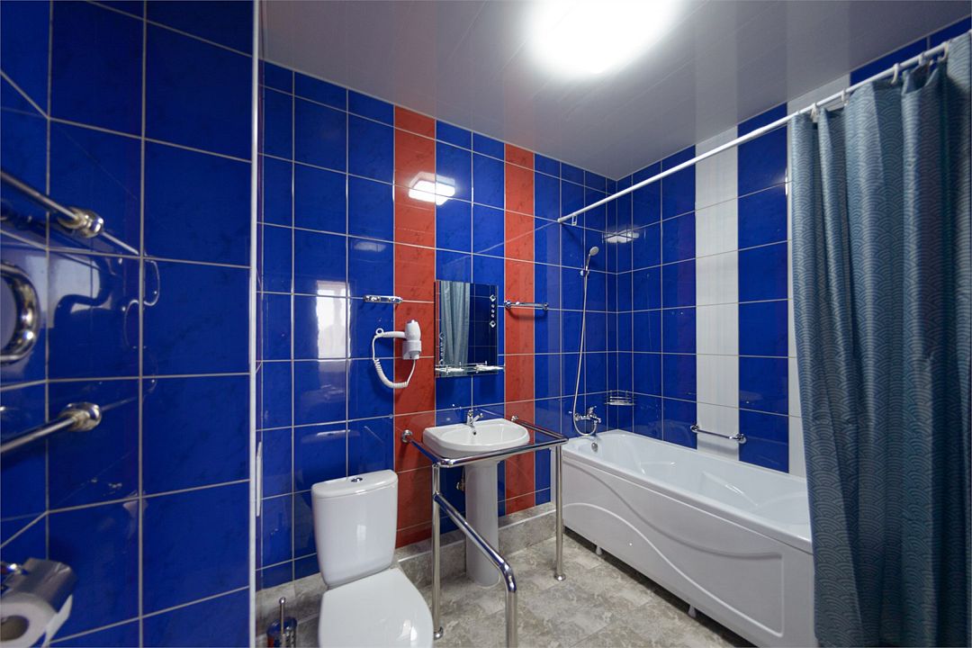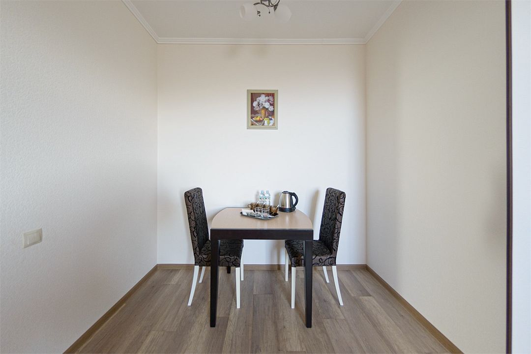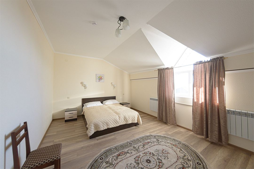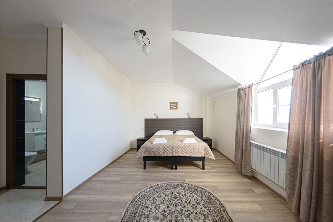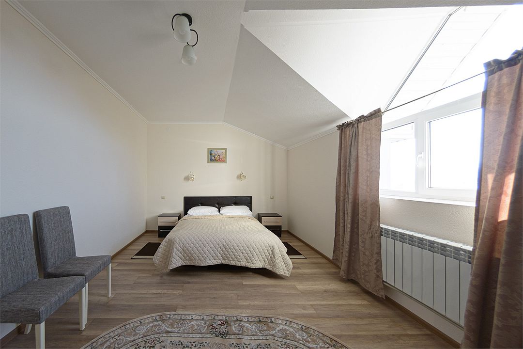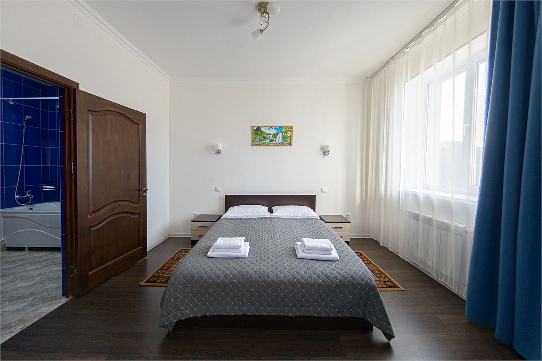 Номер также оснащен необходимой мебелью для приятного отдыха и комфорта, Wi-fi, кондиционер, письменный стол, стулья, полноценная просторная ванная комната, светильник, гостиничная парфюмерия, минеральная вода.