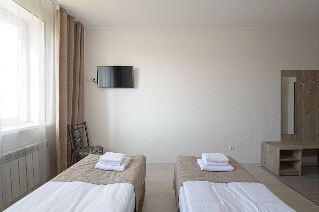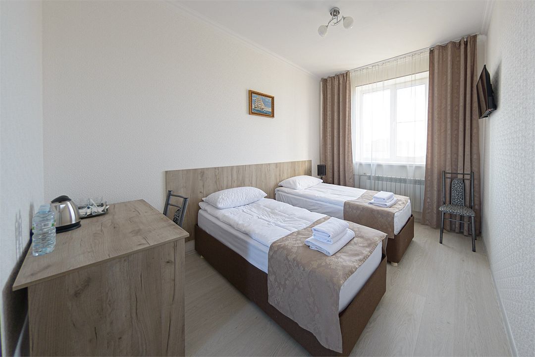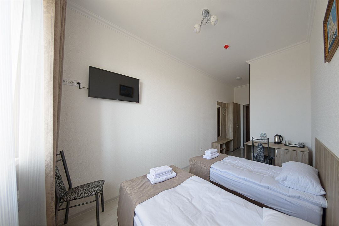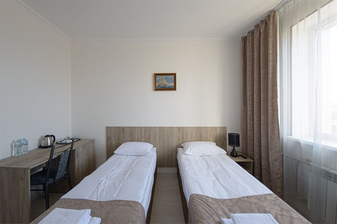 В номере удобная современная мебель, 2 две кровати ( 90*200), Wi-fi, кондиционер, а также организованное рабочее пространство с письменным столом.