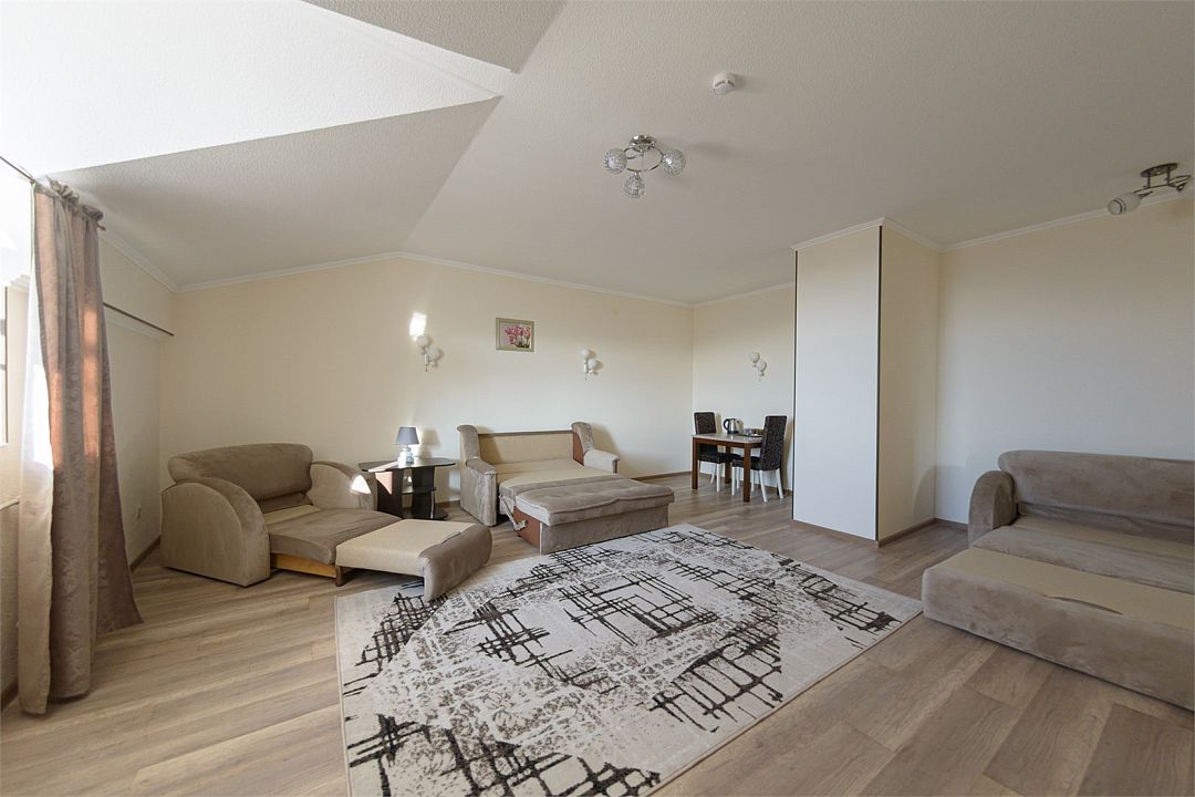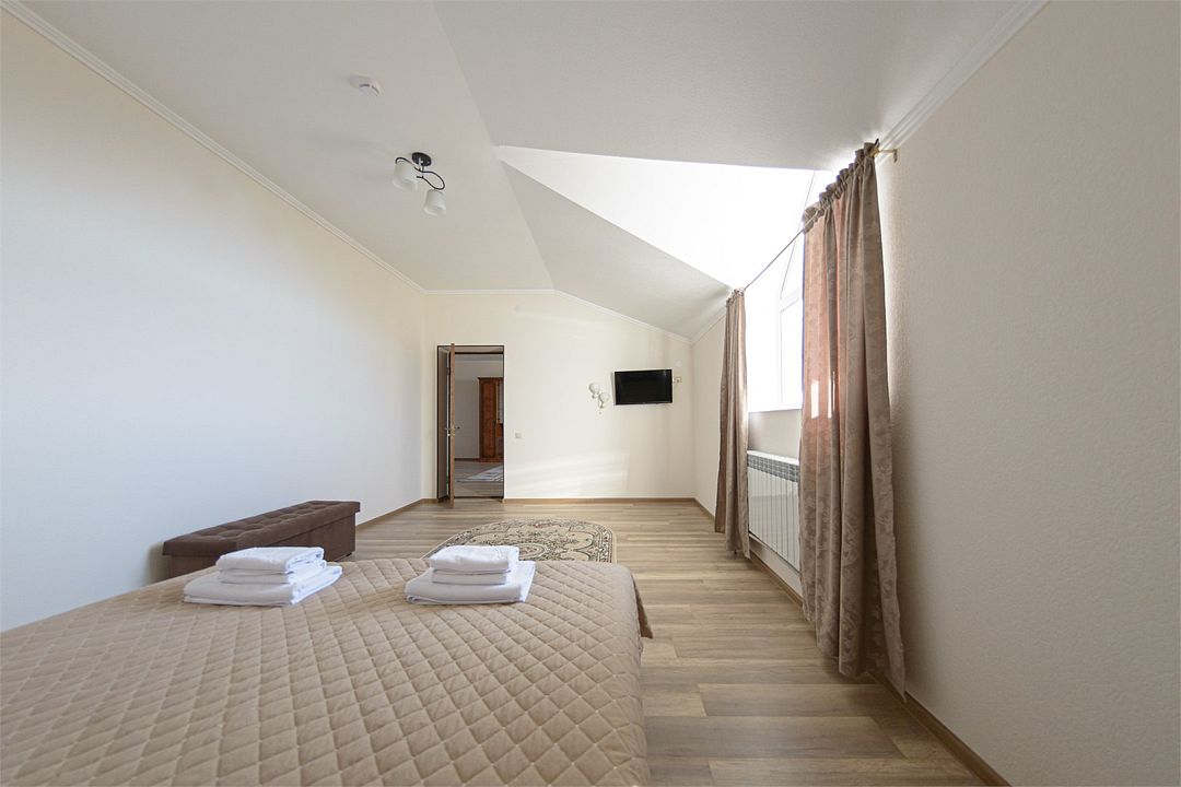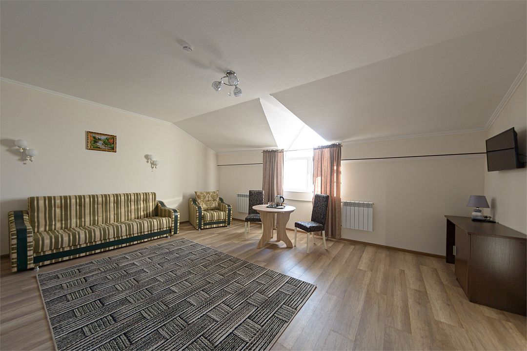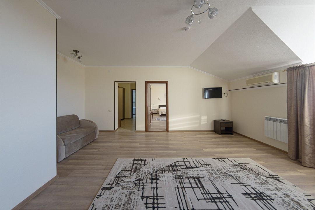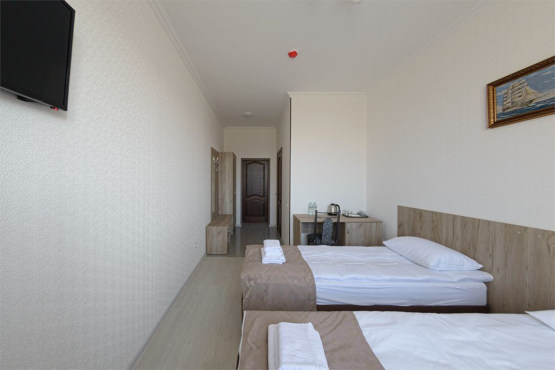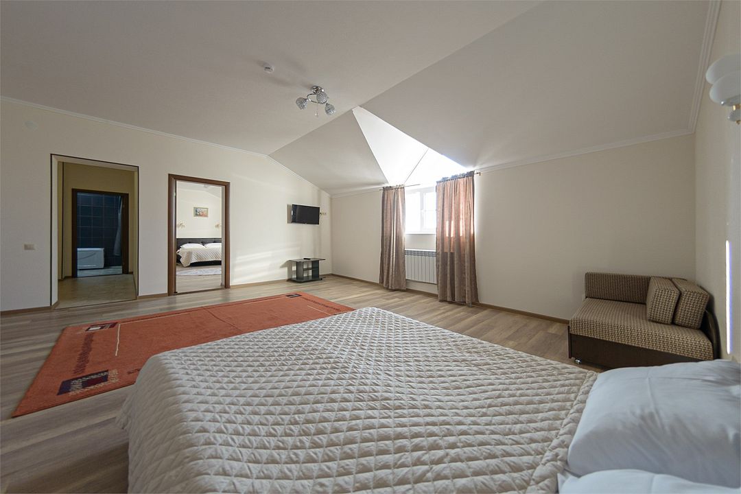 Wi-fi, кондиционер, две большие кровати и диван кровать (одноместное размещение). Для вашего комфорта в данной категории номера предусмотрено два телевизора — сюда так приятно возвращаться после прогулок.