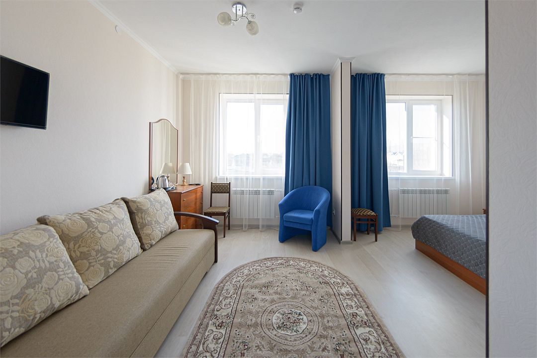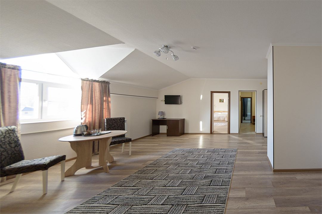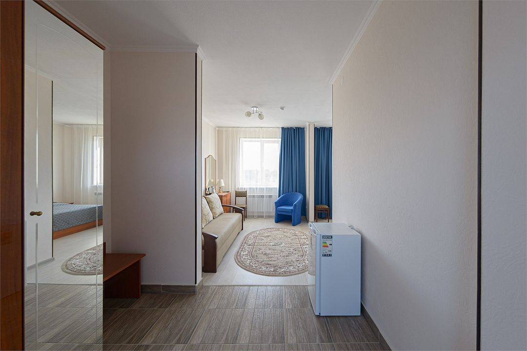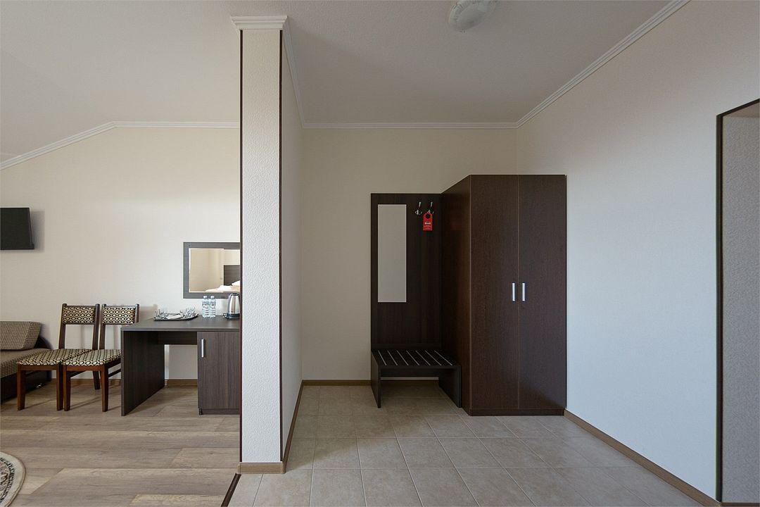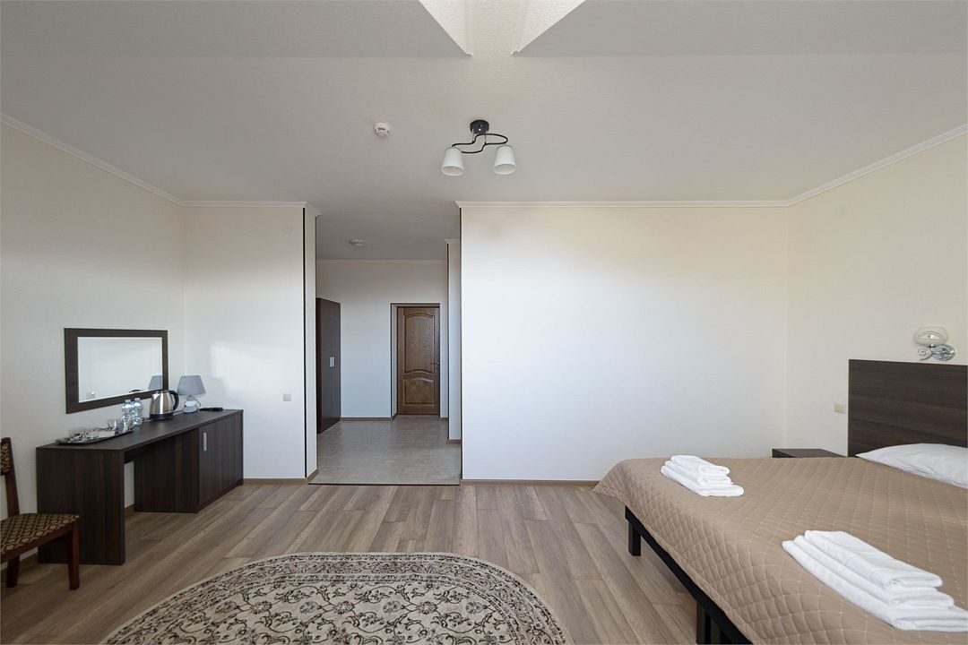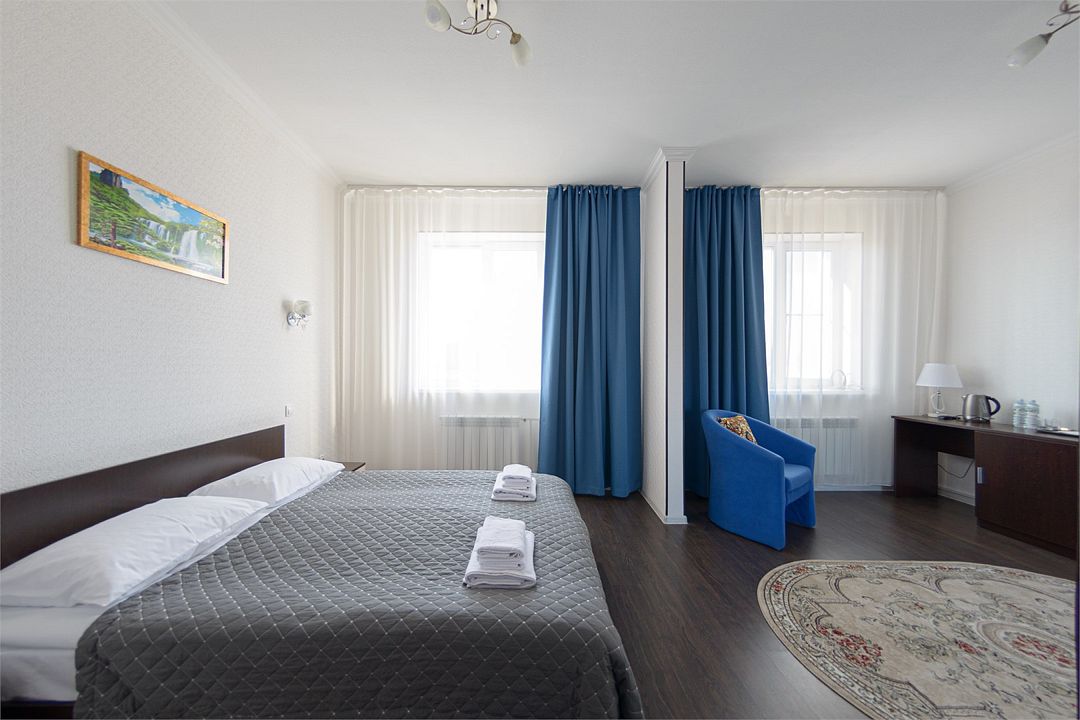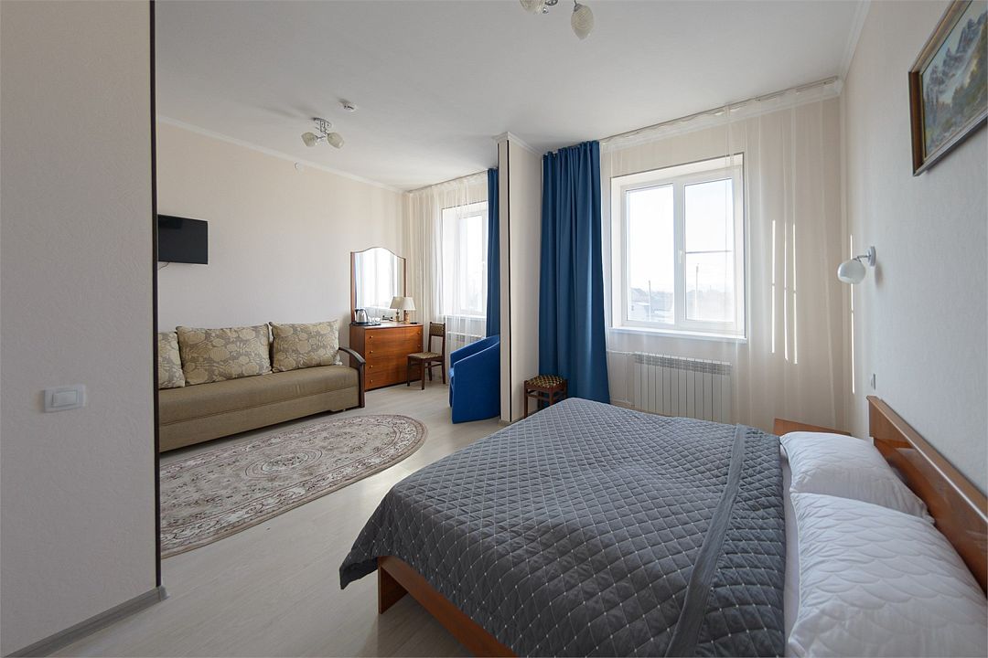 Двухместный номер повышенной комфортности, оснащенный гостиничной мебелью.
