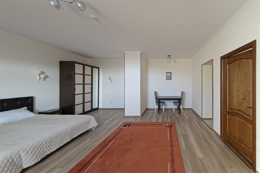 Просторный номер из двух комнат c большой ванной комнатой, располагающий к отдыху интерьер, большая кровать и диван-кровать. Максимальное размещение 4 гостя. Прекрасно подходит для семей с детьми.