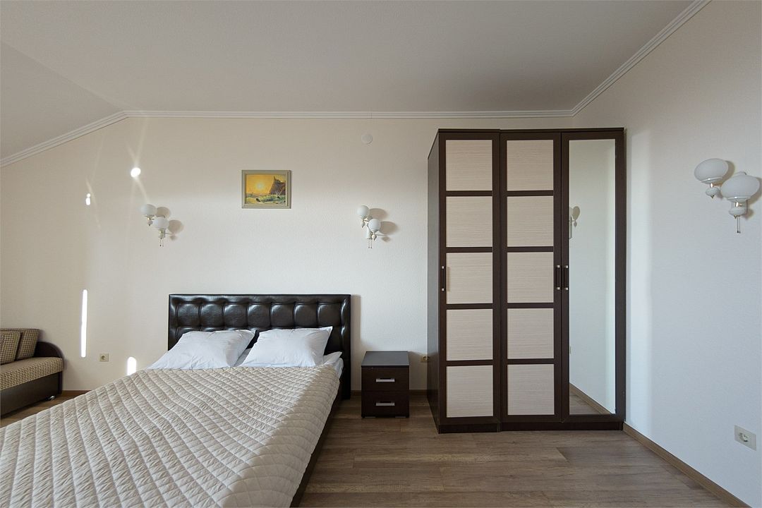 Двуспальная кровать + диван, двухместное размещение.