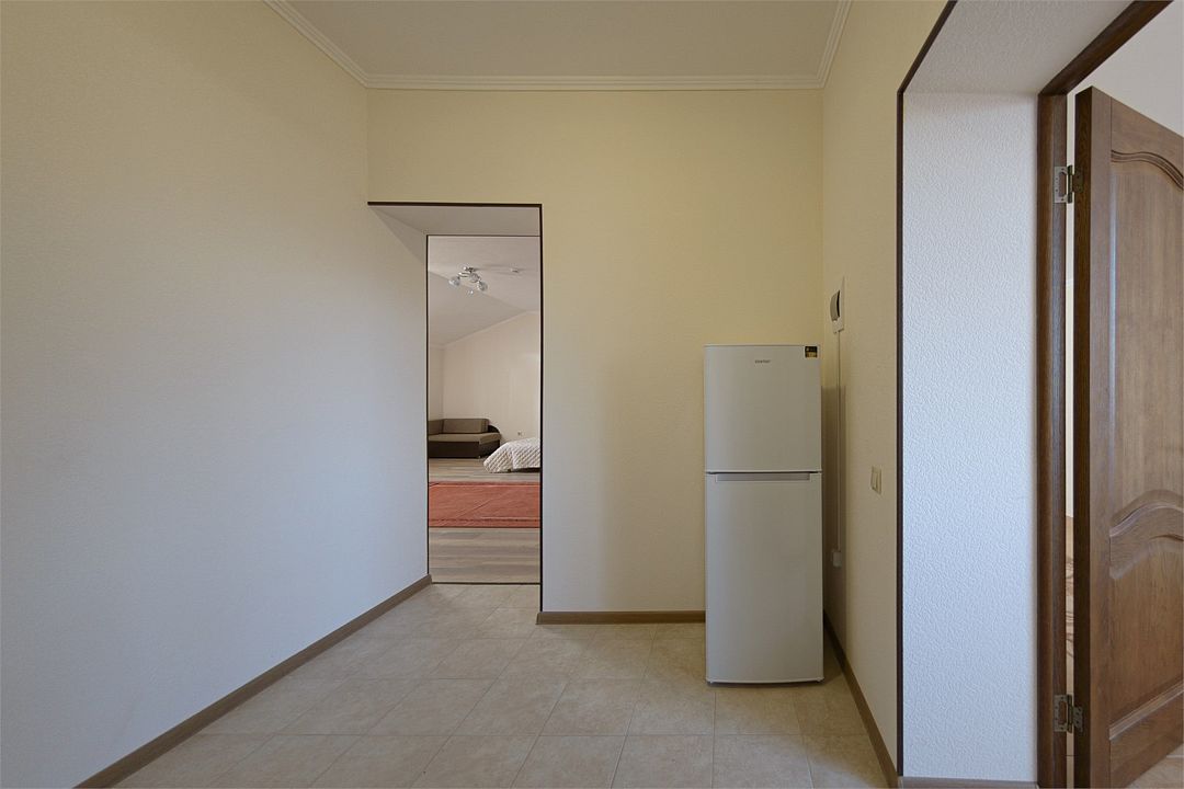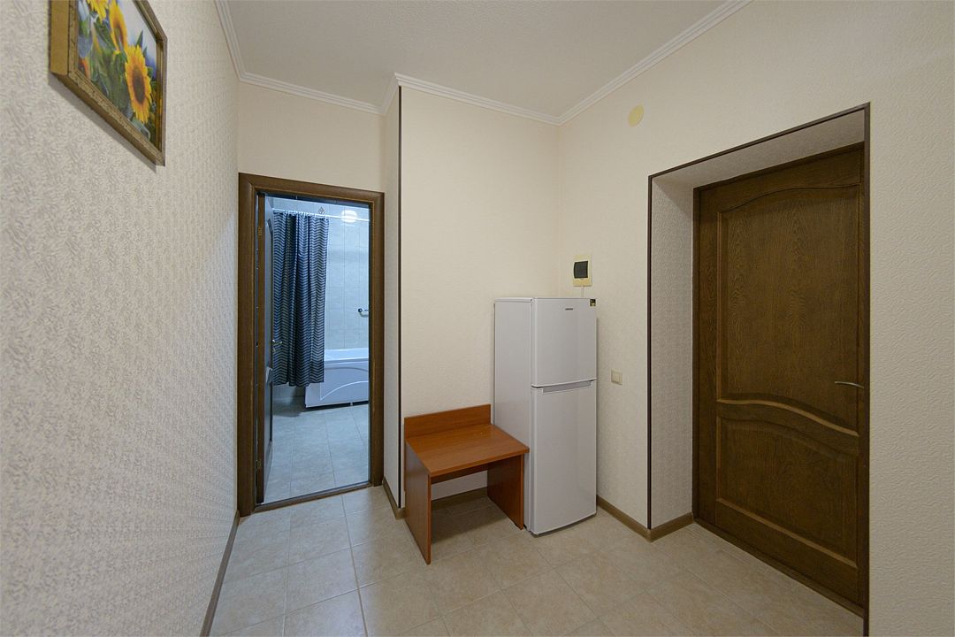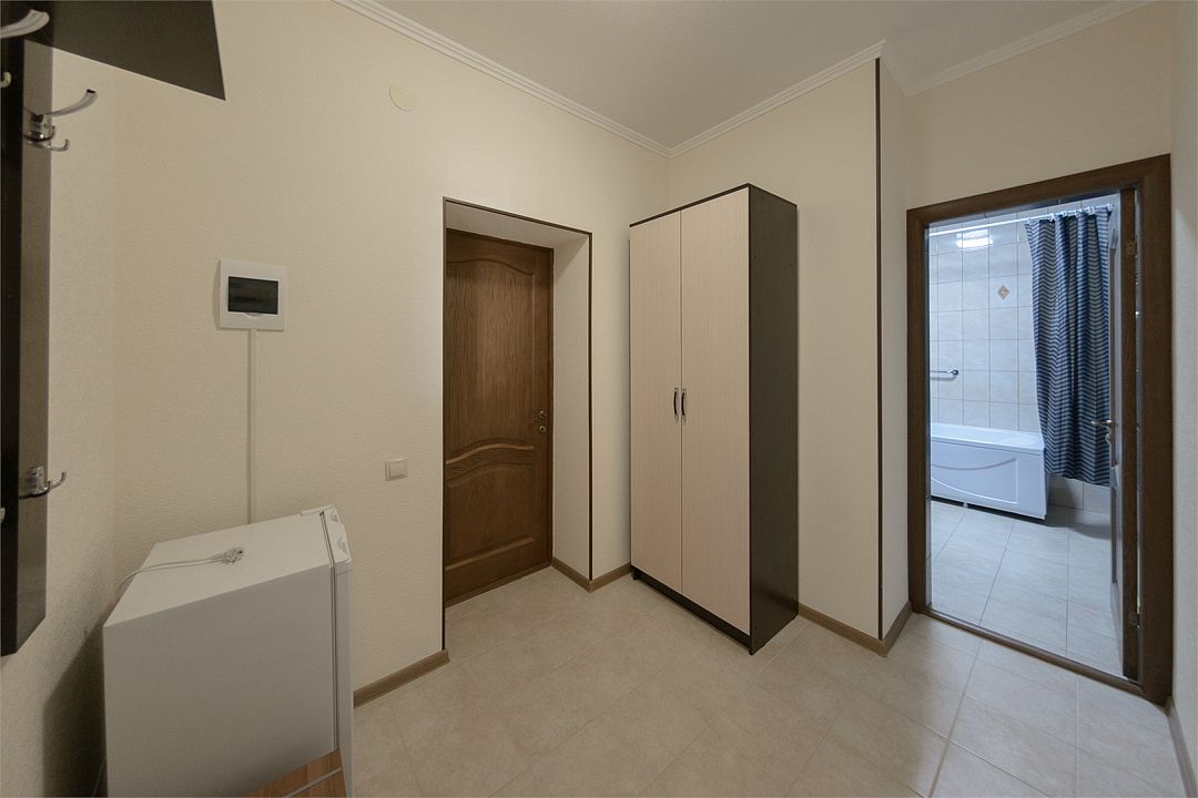 Уютный однокомнатный номер, состоящий из небольшой прихожей и спальной комнаты. Подходит для размещения 1-2 человек.