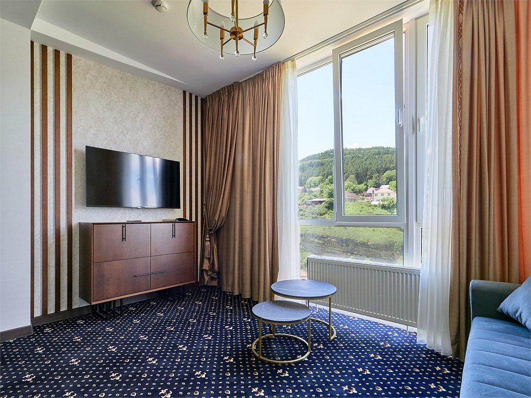 Большой двухкомнатный номер на 2-4 персоны с шикарным видом на Кавказские горы, удобным рабочим местом и расслабляющей зоной для отдыха.Услуги и удобства