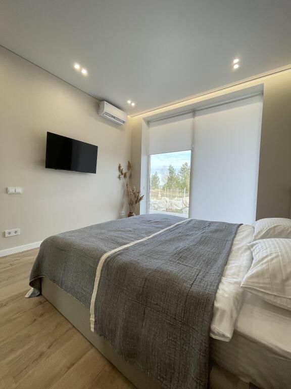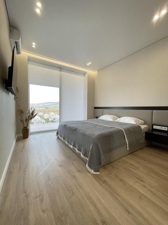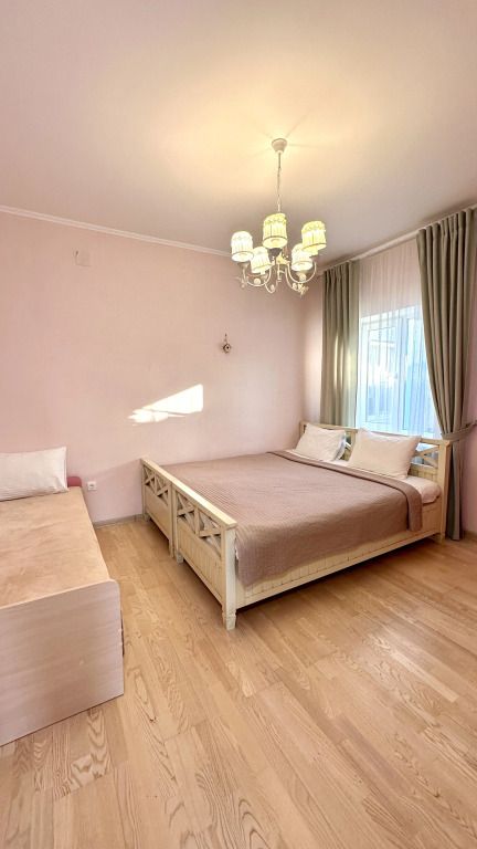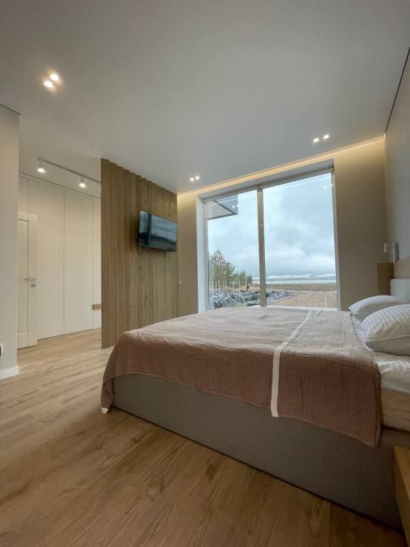 В одной спальне двуспальная кровать, небольшая кровать и шкаф, в другой — двуспальная и небольшая кровати. На кухне сделан теплый пол, на телевизоре онлайн-кино и ТВ. Панорамный вид в три стороны. Также в каждой комнате есть кондиционер. В доме вайфай.