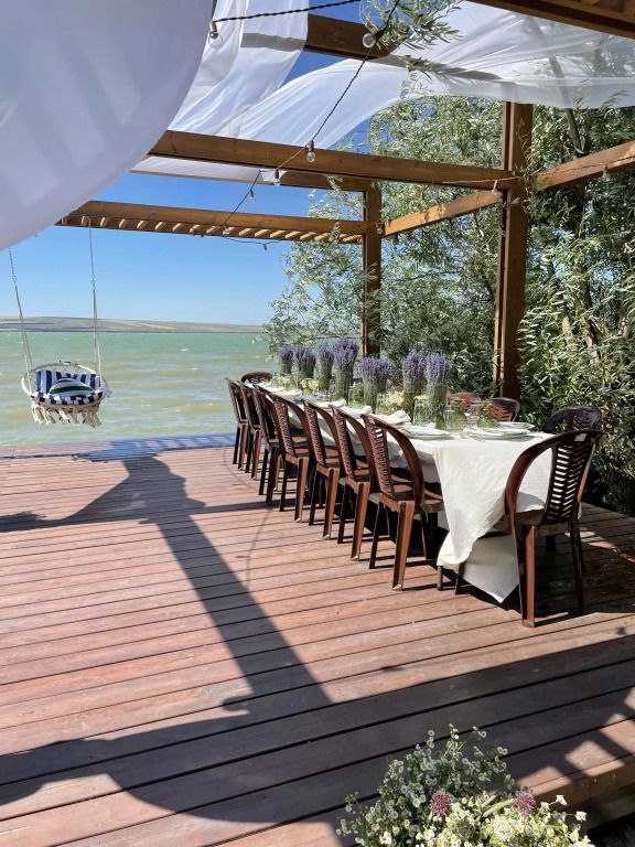 Гостевой дом на берегу озера в 15 минутах от города. Дом состоит из трех комнат. Большая кухня-гостиная и две спальни.