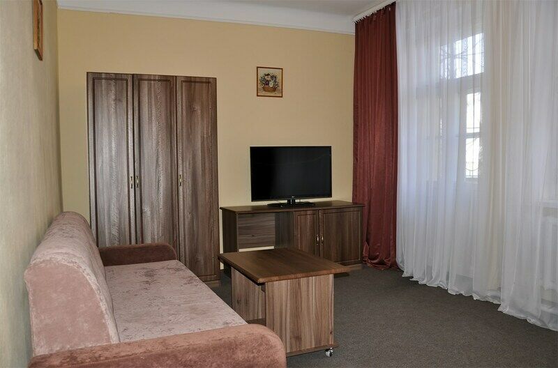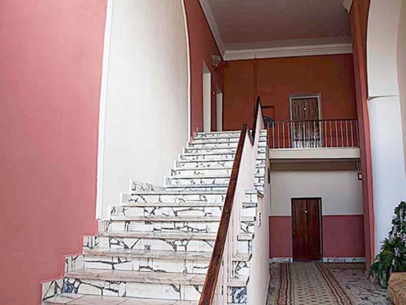 Двухэтажное здание пансионата расположилось в тихом квартале города. Небольшой жилой фонд, рассчитанный на единовременное размещение 38 человек, предлагает отдыхающим одно-, двух- и трехкомнатные номера. В каждом номере имеется санузел с душем, бытовая техника — телевизор, электрочайник, холодильник и удобная мебель. Ряд номеров оборудован балконами.
