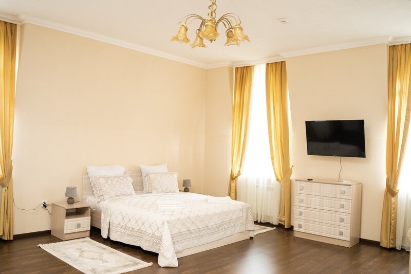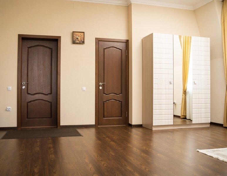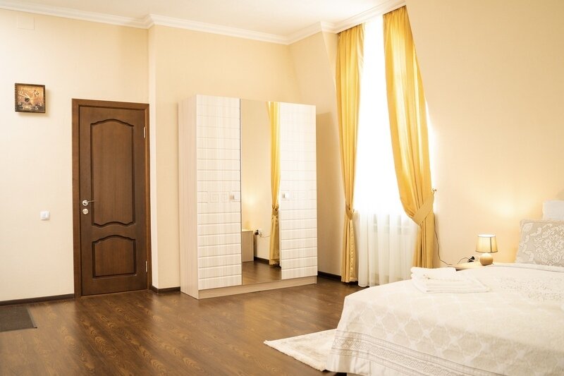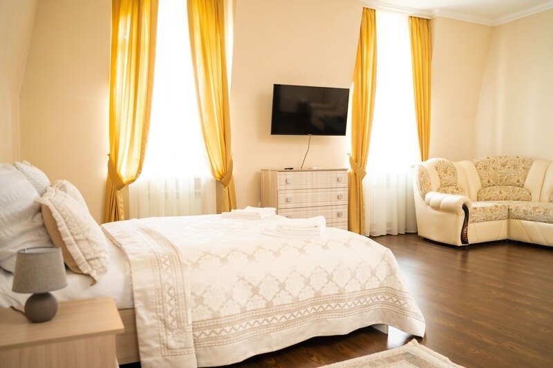 Красивый дом с несколькими этажами располагает тремя номерами для размещения. Все варианты просторные и обставлены необходимой мебелью и техникой. Для деловых людей имеется рабочая зона.