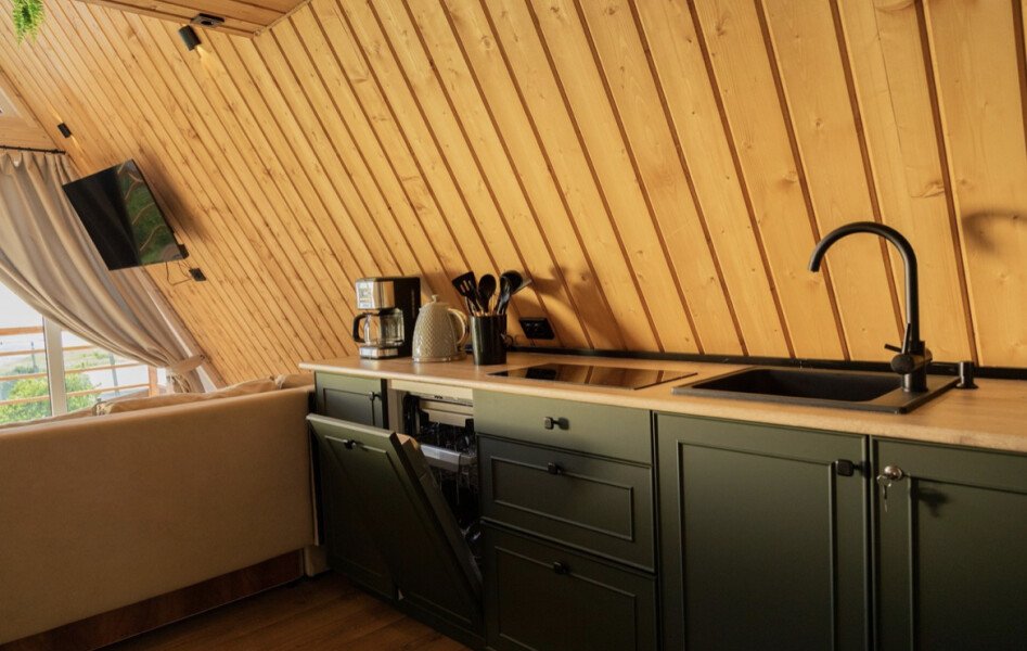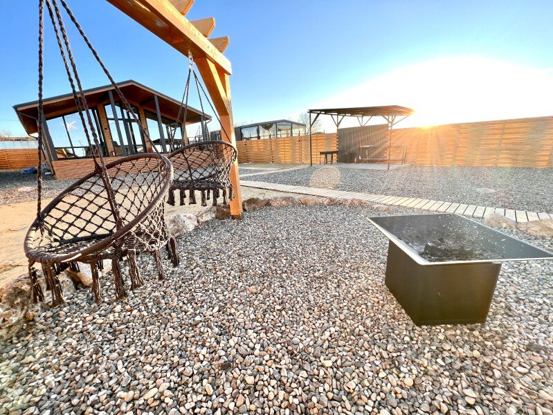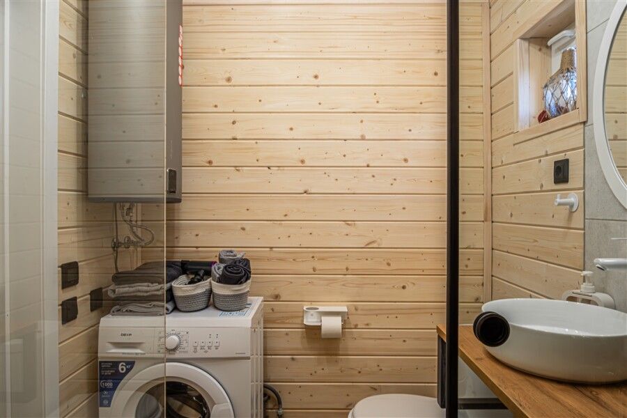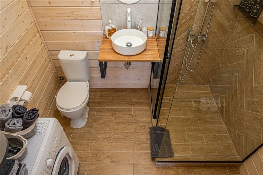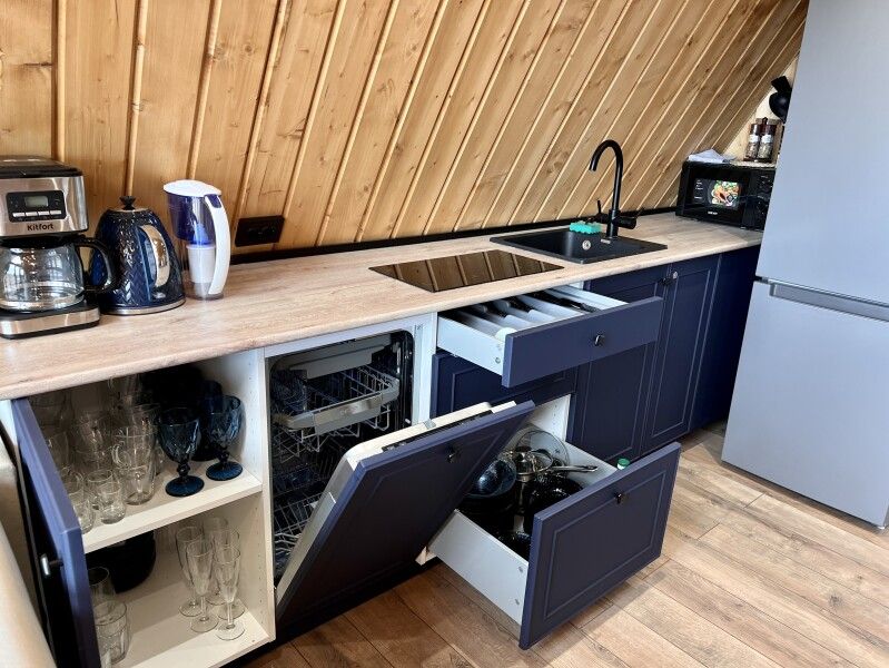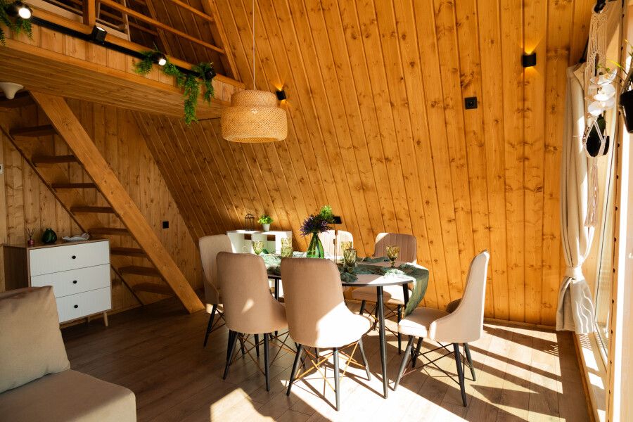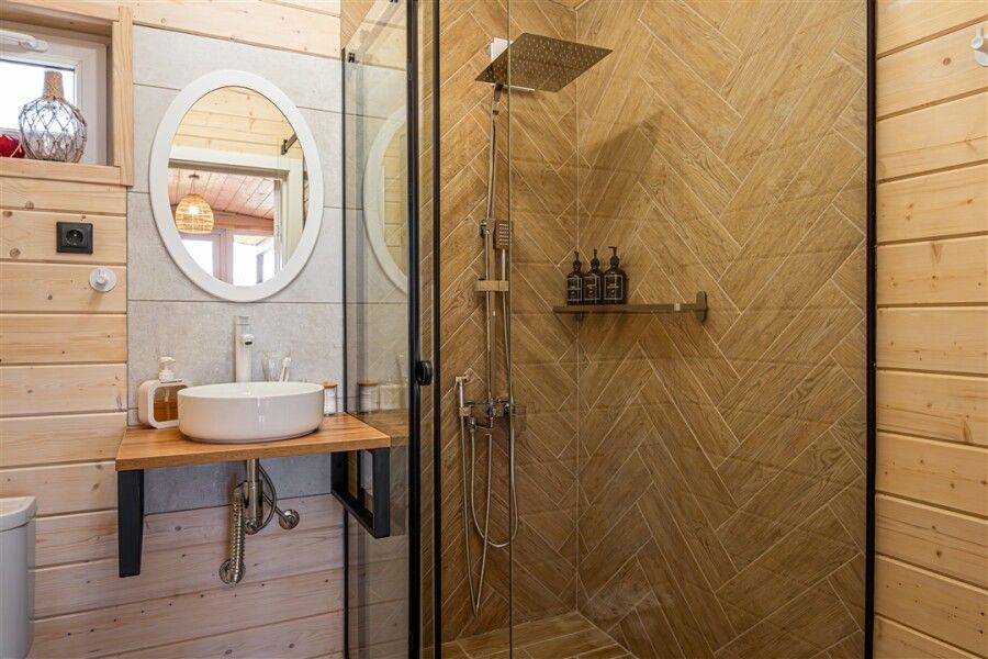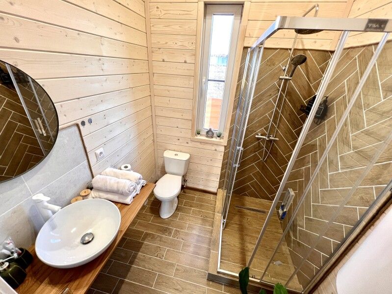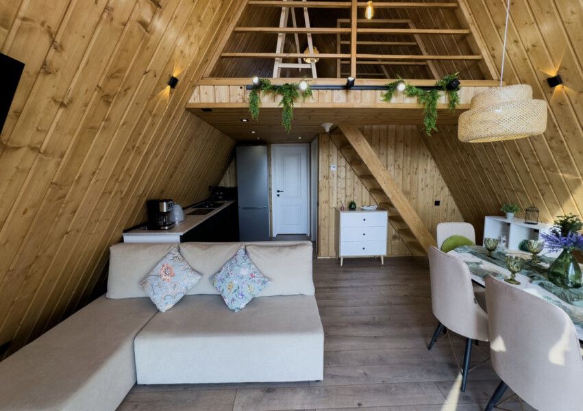 Каждый дом оснащен всем необходимым для комфортного проживания: мини-кухней, уютной гостиной и спальней, а также санузлом с душем. Гости могут воспользоваться современными удобствами, такими как сплит-система, холодильник, посудомоечная машина и мощная Wi-Fi сеть.