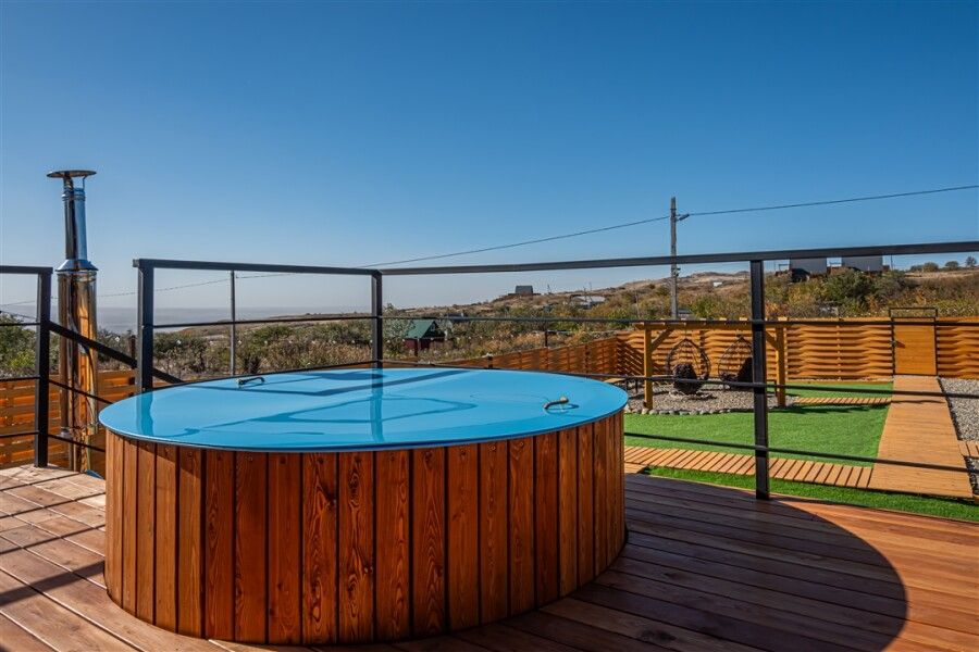 Встроенное джакузи создает особую атмосферу с мягкой подсветкой, превращая каждый момент в волшебное переживание. Купель вмещает от 6–8 человек, что делает ее идеальным местом для дружеских встреч или семейного отдыха.