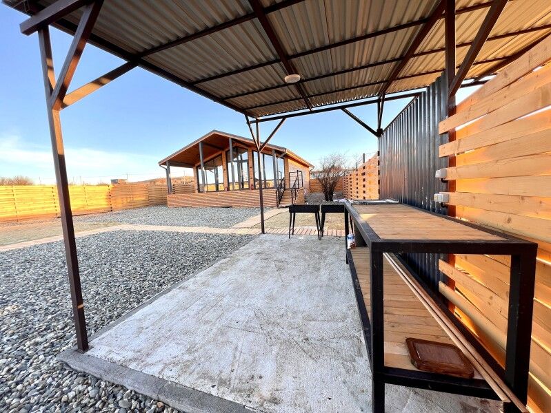 Домик «Рассвет» на участке 5,5 соток с видом на равнины Кавказа. В домике 6 спальных мест, 2 отдельных спальни с двуспальными кроватями и кухня-гостиная с раскладывающимся диваном.