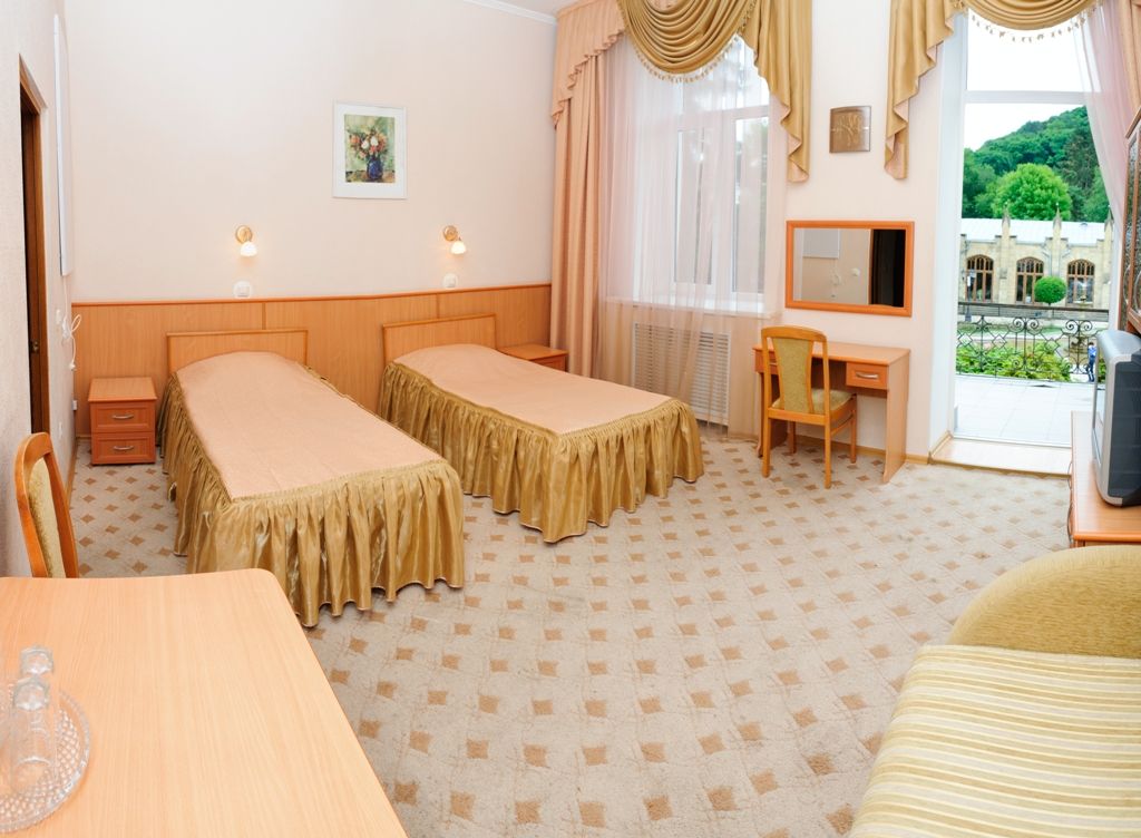 ДостоинстваОтличное местоположение: очень близко парк и нарзанная галерея. Персонал приветливый и доброжелательный. Еда вполне съедобная, кормят 3 раза в день по меню-заказу. Хорошие врачи, отличные процедуры.