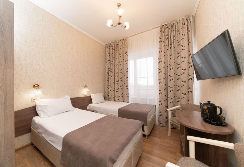 Номер имеет две раздельные стандартные одноместные кровати, совмещенный санузел с ванной. Номер бывает с балконом, так и без балкона.