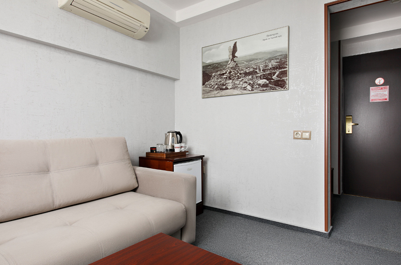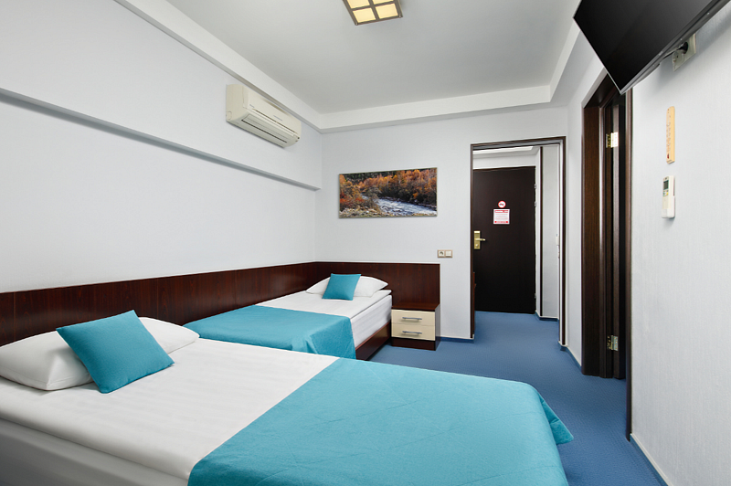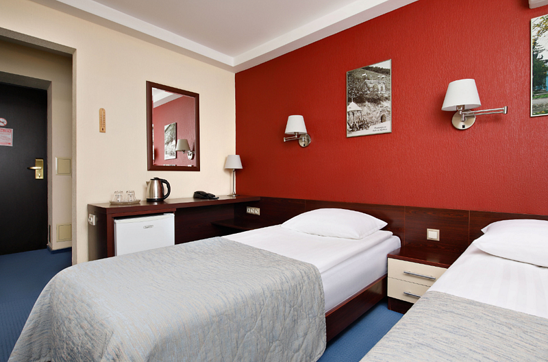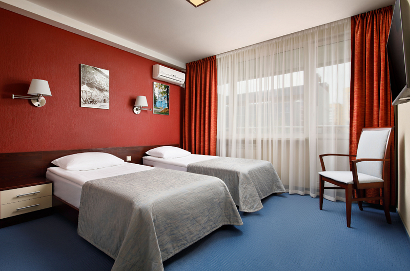 Стандартный номер площадью 15 кв.м. с двумя односпальными кроватями, балконом, с видом на город, гору Бештау или на великолепную панораму Кавказского хребта. Номер имеет все необходимое для путешественников, идеально подойдет тем, кто ищет отличное сочетание цены и качества.