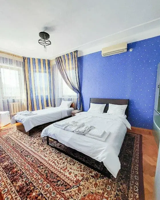телевизор, Wi-Fi, фен, санузел, гигиенические средства, двуспальная кровать, две односпальные кровати, шкаф для одежды, пуфики, вид на город, туалетный столик, мини-холодильник, без питомцевВ гостиничном номере