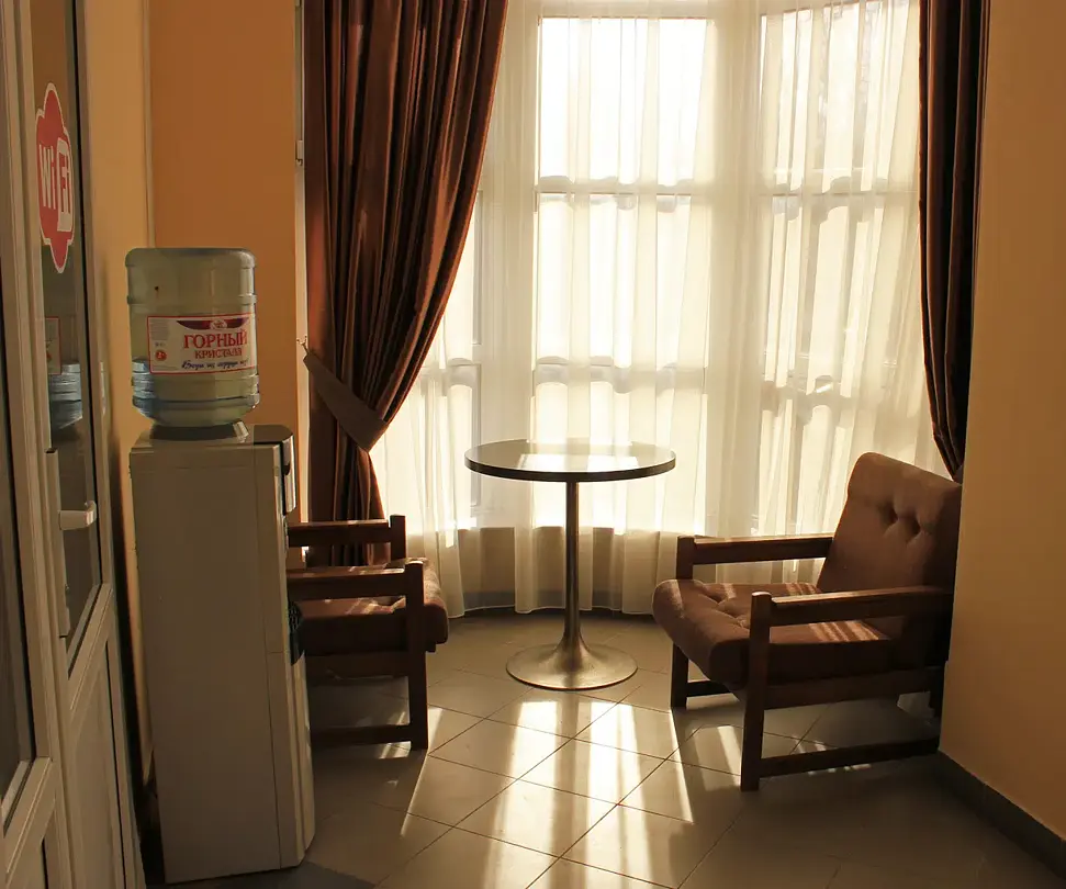 Совмещенный санузел с ванной, фен, гигиенические средства, косметические средства, полотенца, халат, тапочки; сушилка для белья). В номере кровати системы трансформер (TWIN/DBL), ортопедический матрас, мягкая мебель, ТВ, мини-холодильник, КД, сейф, телефон, Wi-Fi, чайник, чашки, чай и кофе, питьевая вода. Балкон с видом на город. Доп. место – раскладывающийся диван. Номера расположены в основном корпусе, в самом центре города-курорта Кисловодска. Всем гостям нашего Гостевого дома доступна возможность прохождения санаторно-курортного лечения в ЛПУ "КИСЛОВОДСКАЯ БАЛЬНЕОГРЯЗЕЛЕЧЕБНИЦА". БЕСПЛАТНО - первичный приём врача терапевта, ЭКГ, при необходимости консультация узкого специалиста. На консультациях гостям подберут терренкуры (маршруты лечебной ходьбы в нашем знаменитом курортном парке), порекомендуют какую минеральную воду и как правильно принимать, подберут индивидуальное лечение и оздоровление. Нарзанные ванны, массажи, физиопроцедуры, восстановление после перенесённой пневмонии и COVID-19, гинекологические и урологические комплексы, проблемы ЖКТ, нарзанные орошения лица, дёсен, глаз, головы, кишечные и гинекологические орошения нарзаном, грязевое обёртывание и аппликации, ректальное и вагинальное грязелечение, ингаляции нарзанные и медикаментозные, физиотерапия аппаратная, озонотерапия, иглорефлексотерапия, карбокситерапия и многое другое. Мы глубоко надеемся, что гости останутся довольны нашим сервисом и услугами.Услуги и удобства
