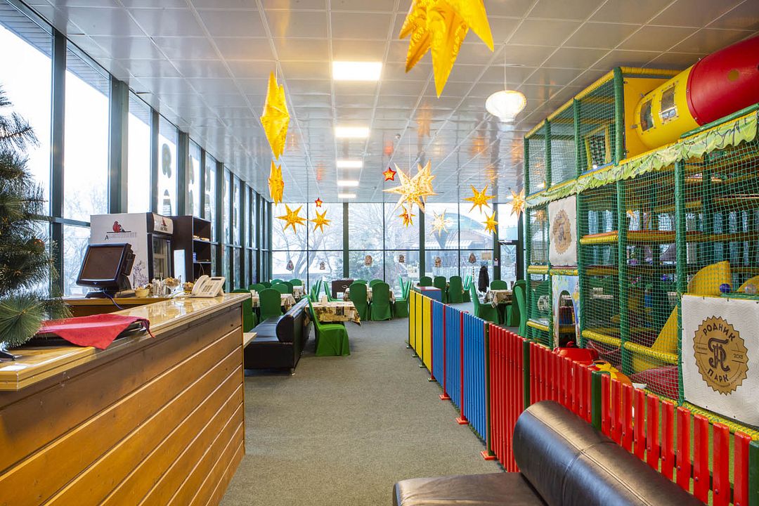Для детей создано особое пространство, в котором сбываются все детские фантазии: лабиринты и горки, батуты, зона для рисования и плазменные панели для просмотра мультфильмов. Команда опытных аниматоров подарит незабываемые эмоции малышам, пока родители занимаются своими делами на территории комплекса.
