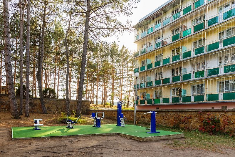 На территории санатория работают футбольная, волейбольная и баскетбольная площадки.