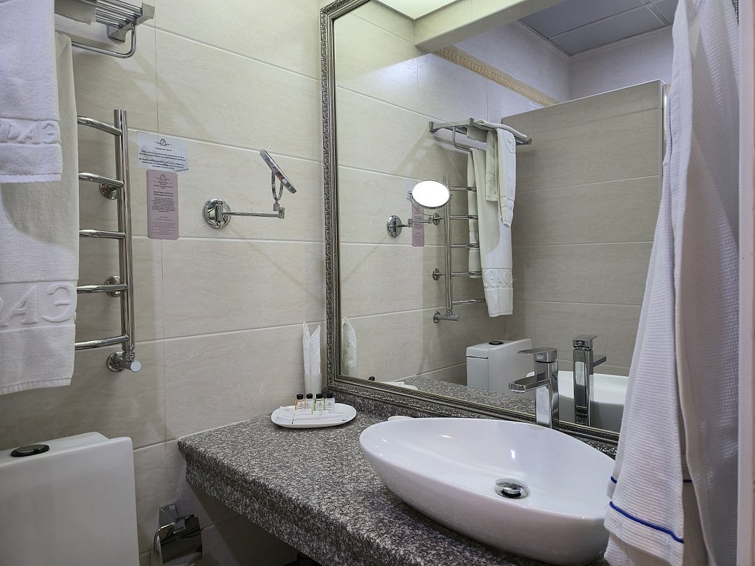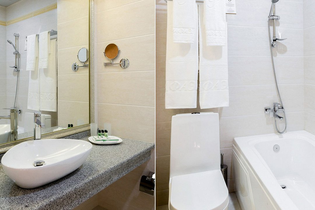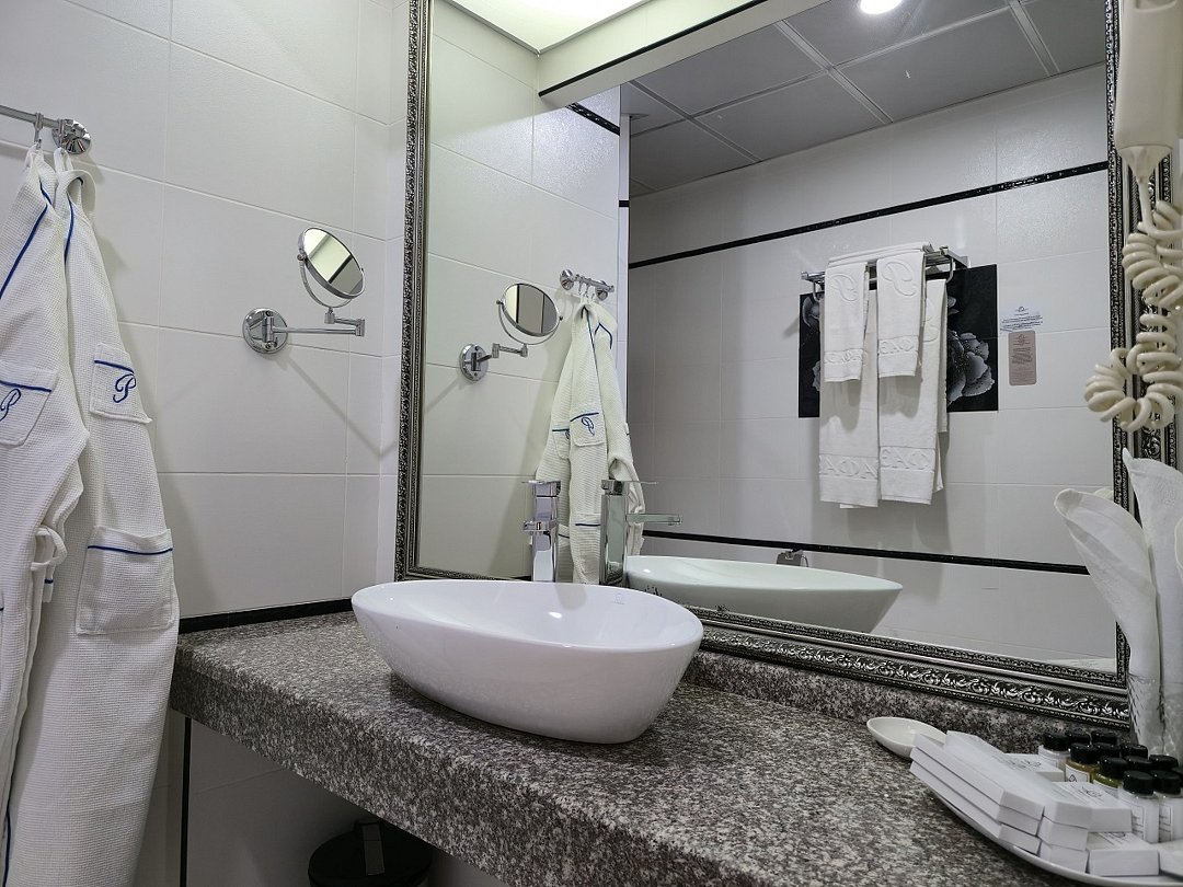 Очень удобный номер, прекрасная уборка каждый день. Хорошая ванная комната: большая, халатики, тапочки, гигиенические наборы, которые пополняют каждый день. На этаже приятная музыка, которую не слышно из номера. Удобная кровать, хорошие подушки.