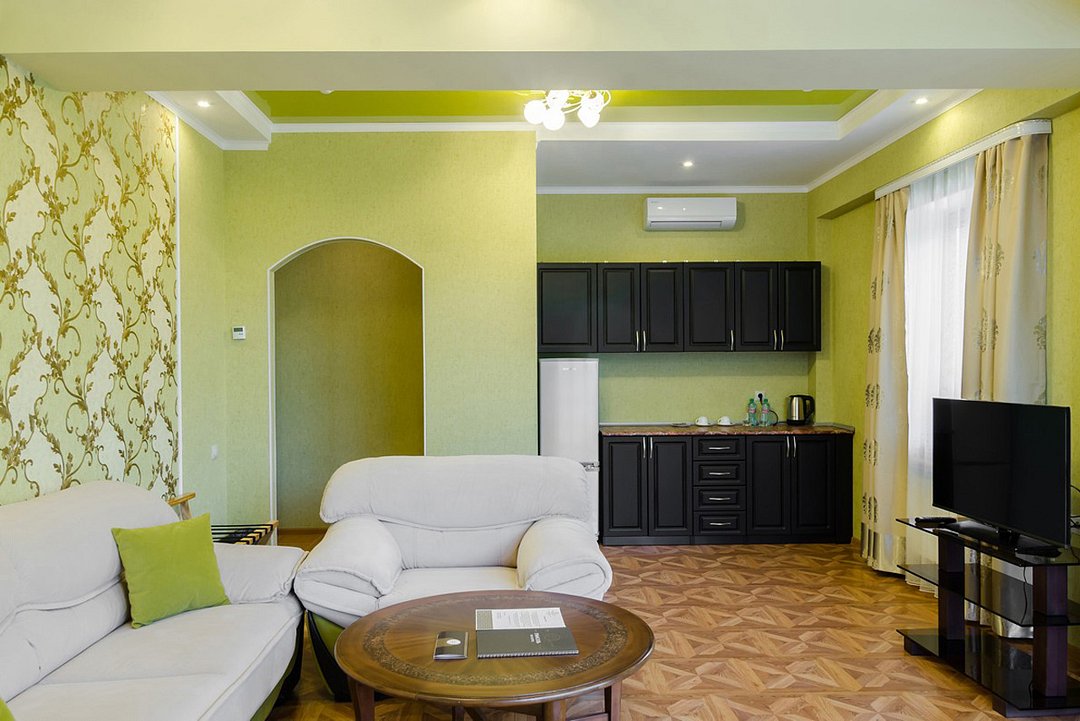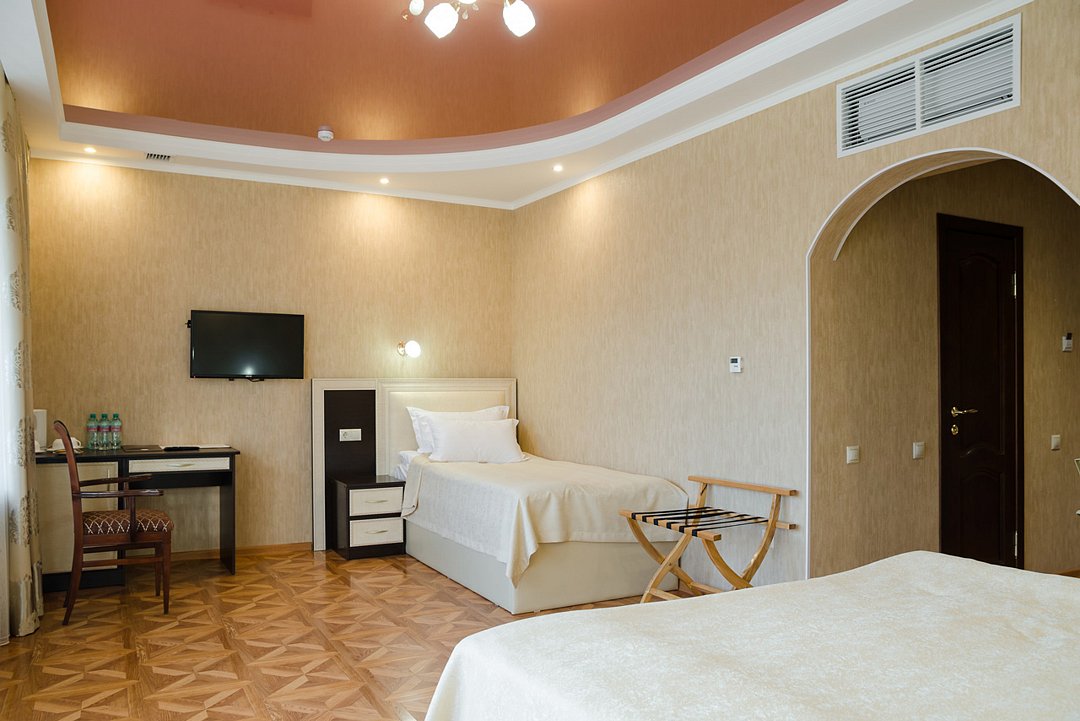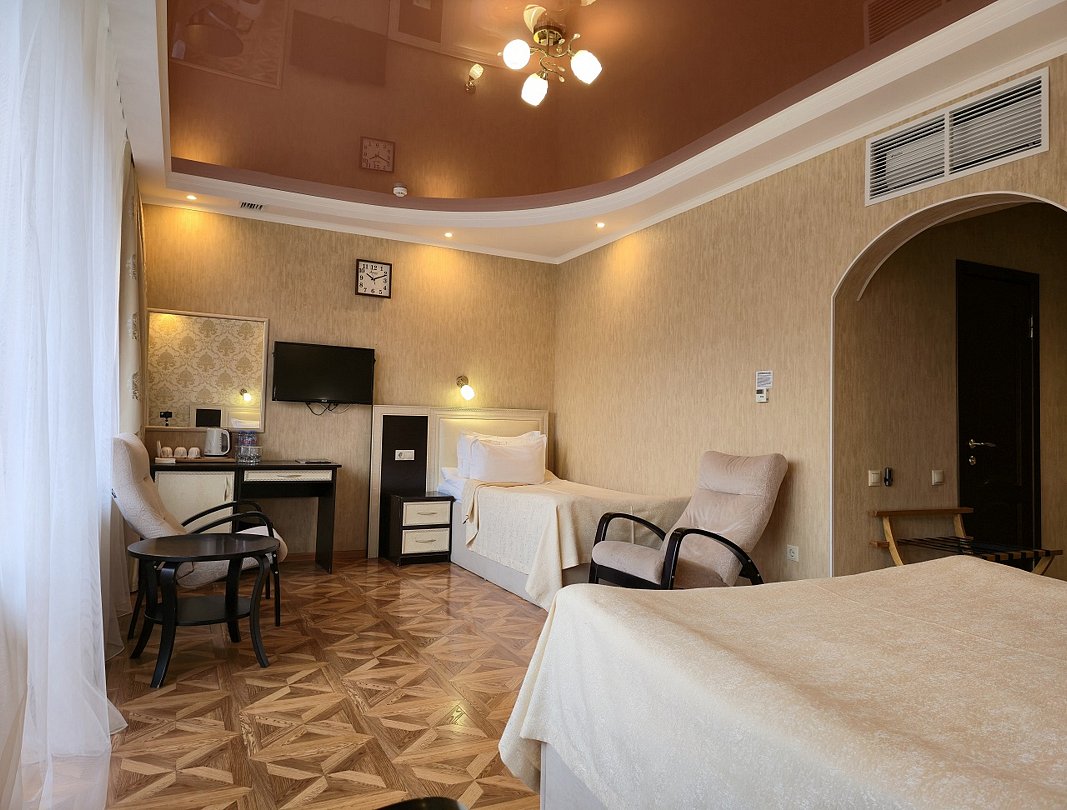 Комфортабельные номера. Просторные номера Стандарт, Люкс и Апартаменты с светлым и стильным интерьером, оборудованы всем необходимым для комфортного отдыха. Дополнительно имеется мини-кухня в Апартаментах и Люксах, а также джакузи в номерах Люкс.