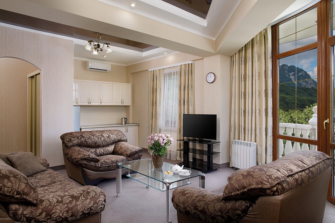 Путешествие с семьейцелебный отдых в спа-отеле "Рафаэль"Очень приятный отель с благожелательным персоналом, комфортное проживание, красивые интерьеры, отличный номер с видом на горы, есть SPA-центр, бильярдная, библиотека, шахматы, спортивный зал, в ресторане - очень красивая посуда и разнообразное питание.