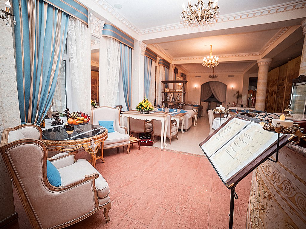 Ресторан отеля обеспечит атмосферу уюта и комфорта для своих гостей. Изысканный интерьер, изобилие зеркал и декоративных элементов создают уникальную обстановку. Ресторан станет отличным выбором как для деловых встреч, так и для романтических ужинов. В меню представлены блюда европейской, кавказской, русской и японской кухни, дополненные профессионально составленной винной картой, которая удовлетворит вкусы самых взыскательных ценителей.