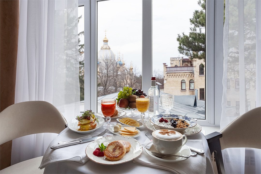 - поздний завтрак в номере (до 14:00) или в ресторане «Родина» (до 11:00) (требуется предварительное бронирование);