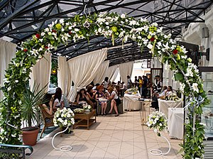 - SPA-программы, различные виды массажа, парикмахерские услуги; программы по уходу за руками и ногами, маникюр-педикюр, услуги визажиста до/после торжества;