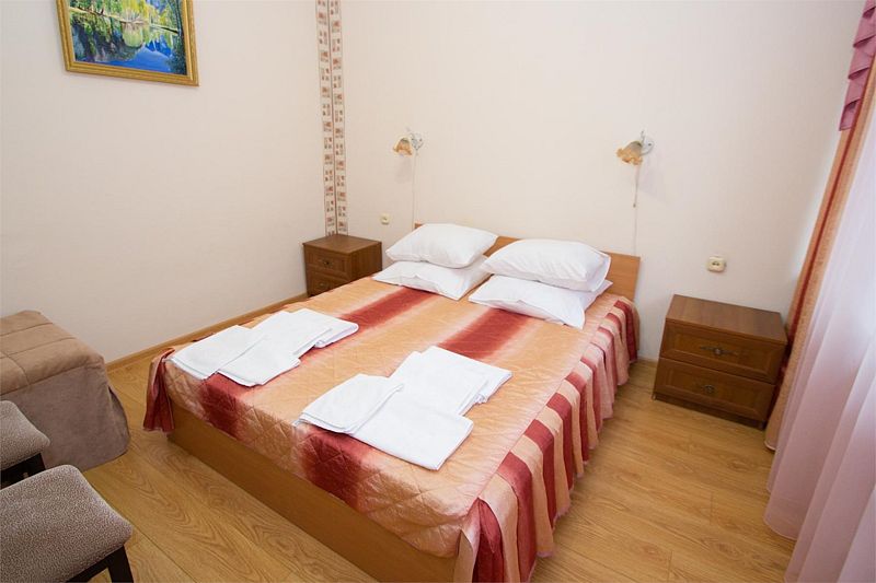 Улучшенный однокомнатный или двухкомнатный двухместный номер со всеми удобствами. Возможно размещение на дополнительном месте взрослого или детей.