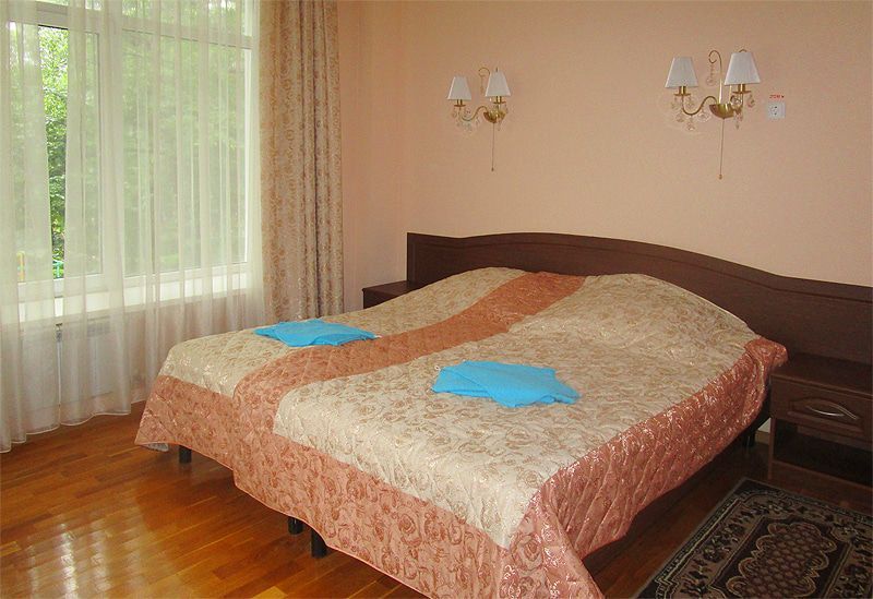 Стандартный однокомнатный двухместный номер со всеми удобствами. В некоторых номерах возможно размещение на дополнительном месте. Из номера открывается вид на живописную лесопарковую зону.