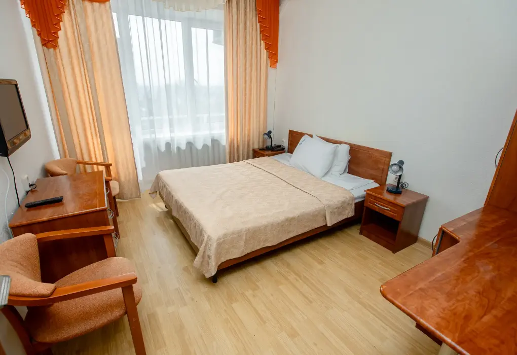 К проживанию предлагаются одноместные номера, (в том числе повышенной комфортности), двухместные номера (в том числе класса «Люкс»), номера класса «Апартамент». Все номера с удобствами (ванна или душевая кабина, сан. узел, горячее и холодное водоснабжение), оснащены холодильниками, сейфами, спутниковым телевидением, телефонами и интернетом.