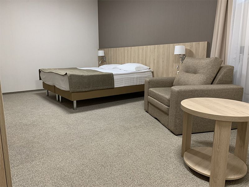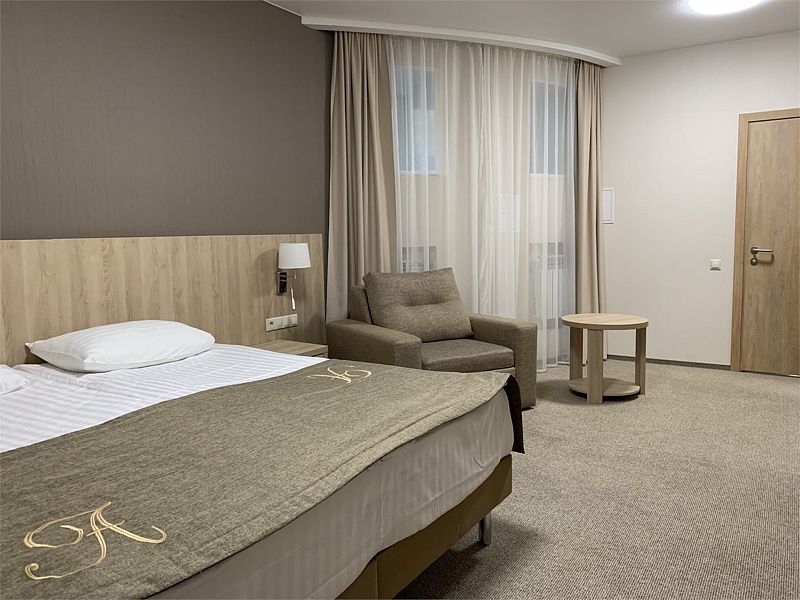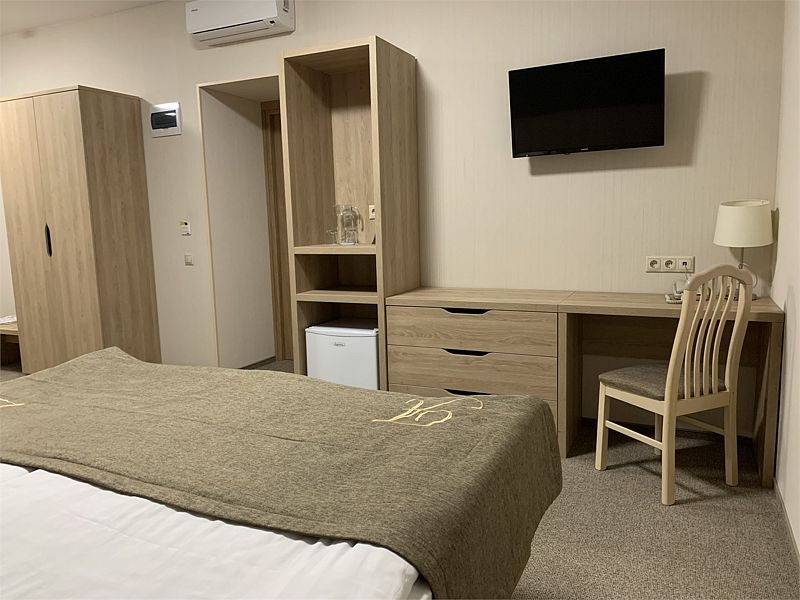 В номере вы найдете все необходимое для комфортного пребывания. Вас ждет большая двухспальная кровать, которая обеспечит вам отличный сон и полноценный отдых, а также кресло-кровать.