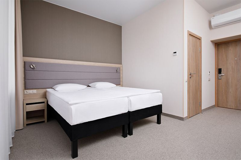 Комфортабельный номер в корпусе "Центральный" состоящий из спальни с двумя односпальными кроватями, ванной комнаты с душевой кабиной.