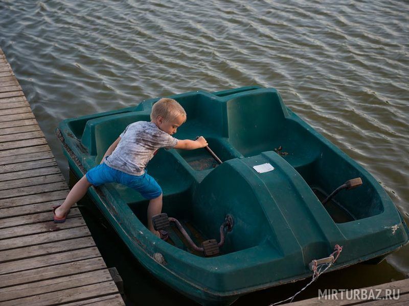 Помимо детской площадки Ваши чада могут развлечься, покатавшись по глади озера на детском катамаране.