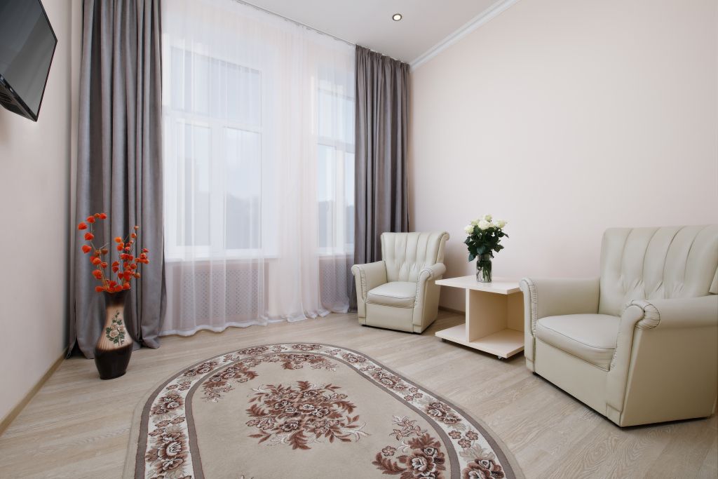 Гостям предлагается размещение в уютных номерах различных категорий. Интерьеры выполнены в светлых тонах и выдержаны в классическом стиле, создающем ощущение уюта и спокойствия. Каждый номер оборудован всем необходимым для комфортного пребывания. Для постоянных гостей действует гибкая система скидок.