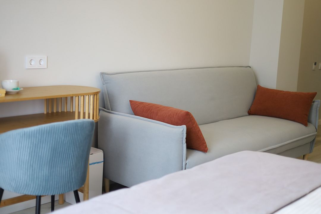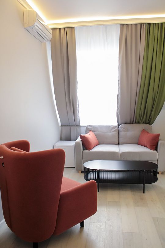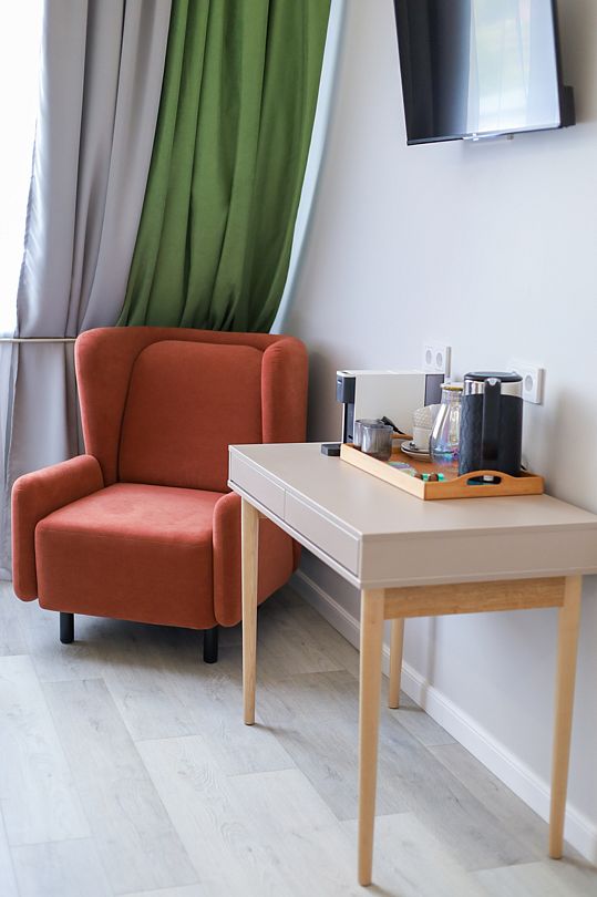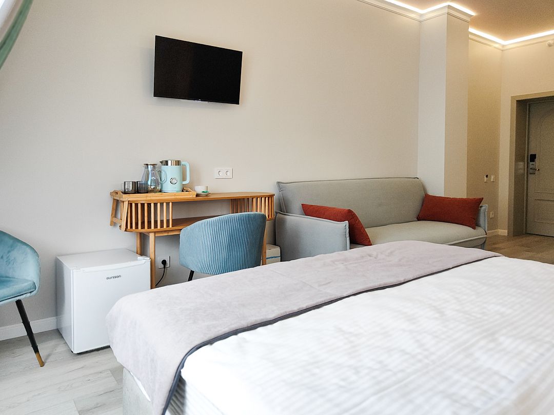 с/у,ТВ,Х, колонка Алиса, доп место - диван или кресло-кровать, сплит-система, чайник