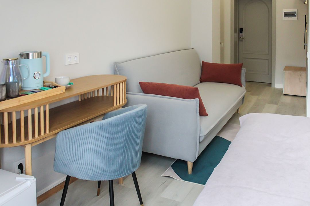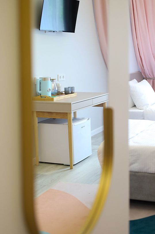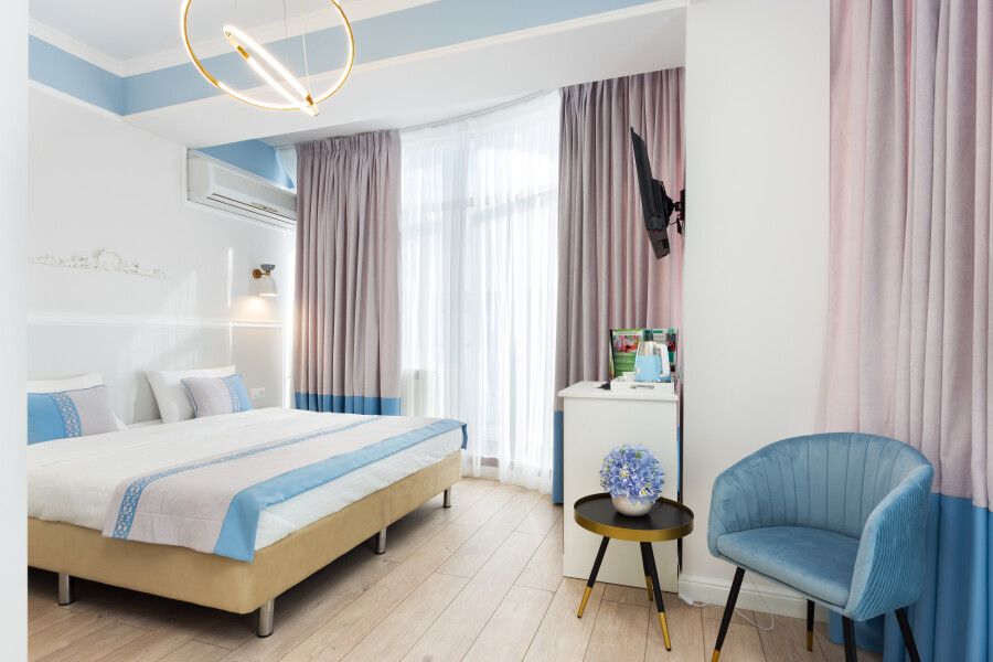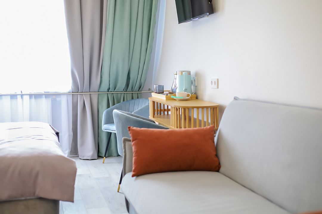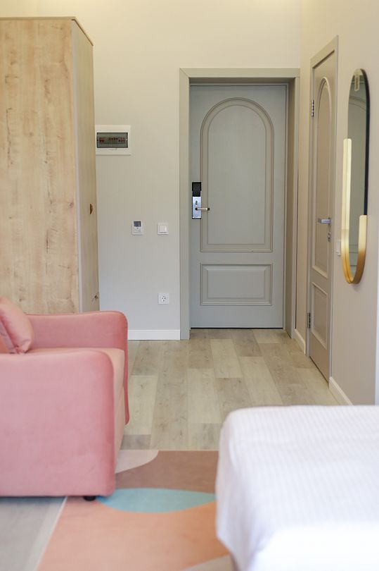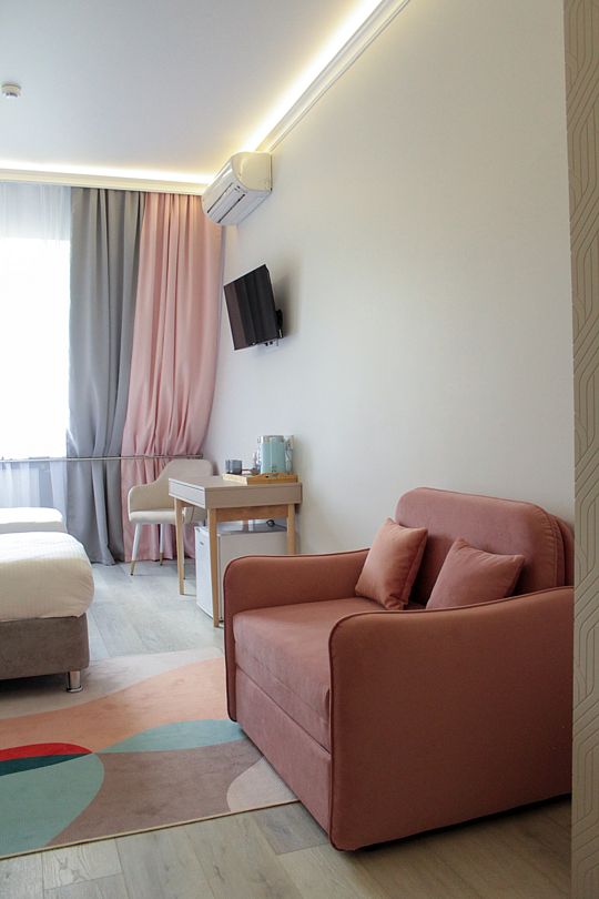 Семейный отдыхДостоинстваВ этом замечательном отеле меня приятно удивил высокий уровень сервиса. Когда мы еще находились в дороге, с нами связались через мессенджер и предложили выбрать завтрак из меню и уточнили время подачи, причем завтрак был подан в номер. Дизайнерский ремонт в отеле был выполнен с тонким вкусом, находиться там - настоящее эстетическое удовольствие)