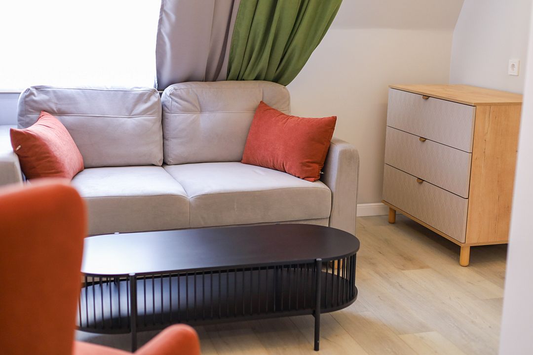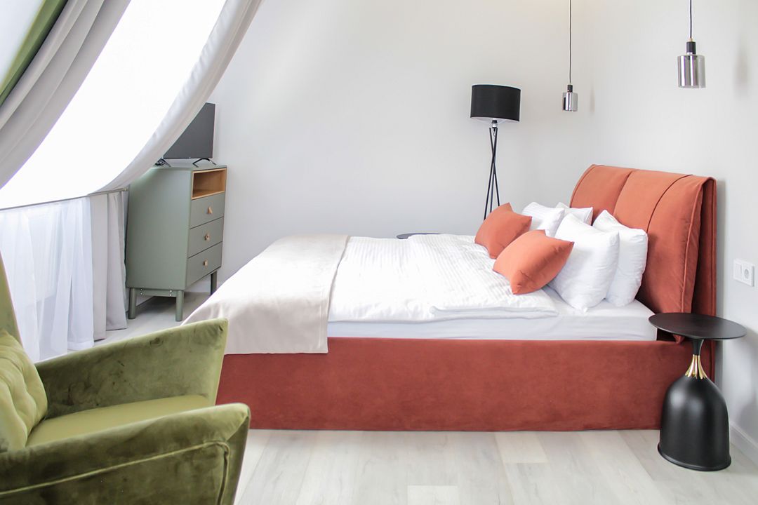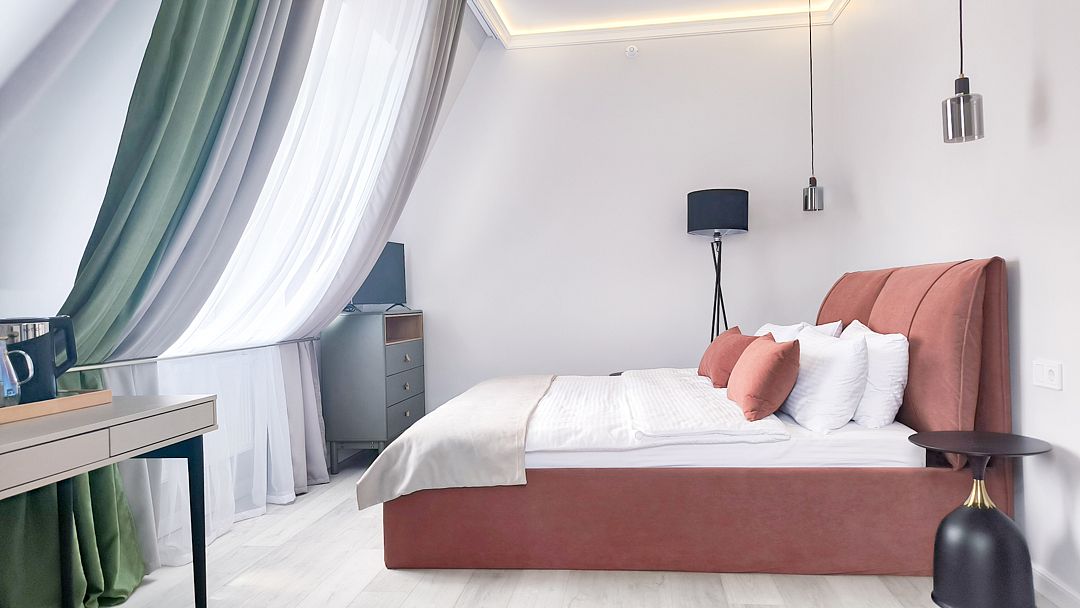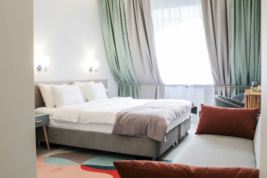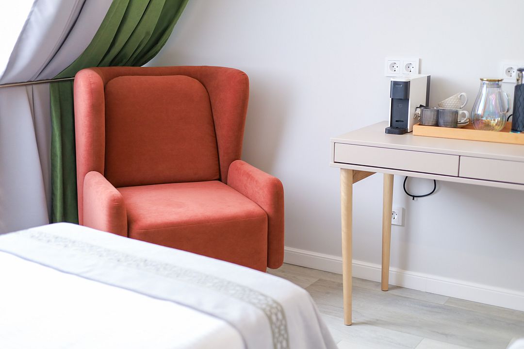 Светлый и просторный двухкомнатный номер с деревянной мебелью и панорамными мансардными окнами. В гостиной можно комфортно провести время за чашкой чая, а в спальне – насладиться крепким сном на удобной кровати с ортопедическим матрасом. Лаконичный дизайн, функциональное пространство и душевая кабина с тропическим душем делают этот номер идеальным для тех, кто ценит уют и практичность. Чтобы отдых стал ещё приятнее, рекомендуем посетить наш SPA с широким выбором расслабляющих процедур.