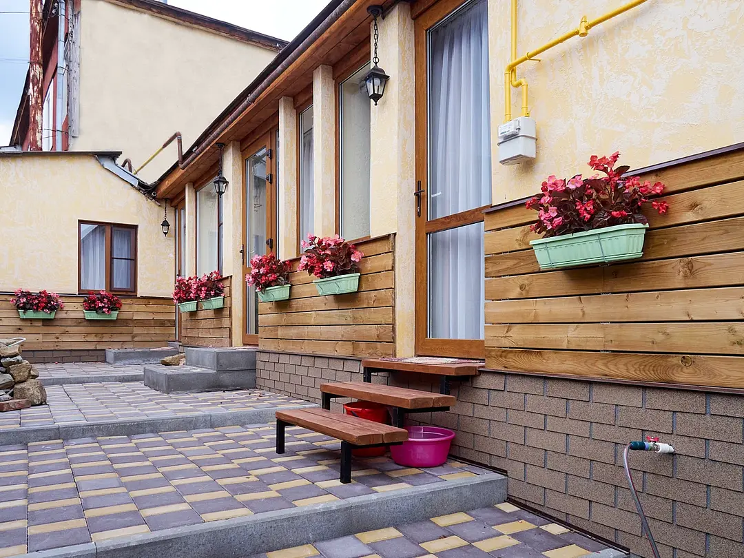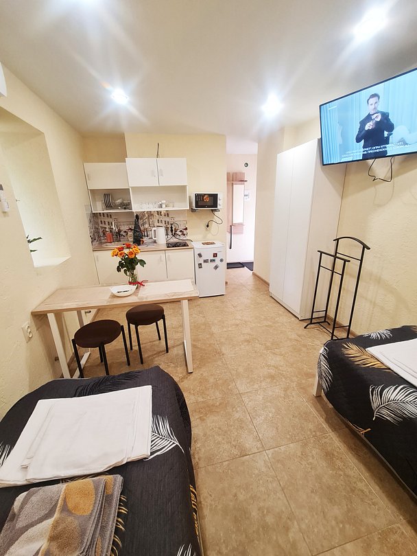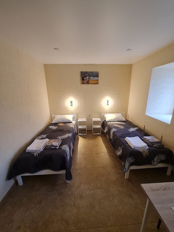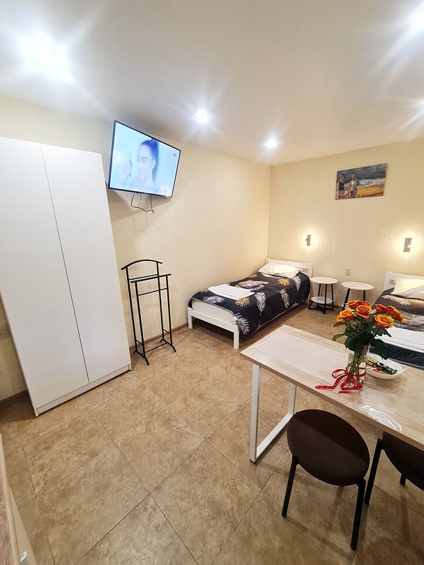 Из развлечений: телевизор и бесплатный Wi-Fi. Круглосуточное горячее водоснабжение и отопление. Все номера имеют отдельный вход и выходят в тихий и уютный внутренний дворик.