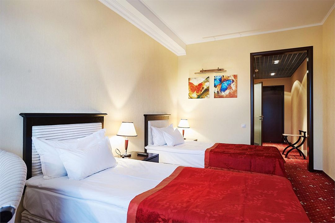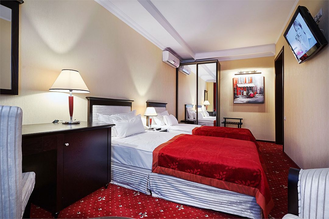 Уютный двухместный номер, в котором есть все необходимое для работы и отдыха. В номере 2 односпальные кровати, удобная мебель, для максимального комфорта современного человека. Душевая комната номера укомплектована туалетно-косметическими принадлежностями и свежими полотенцами. Гостям предоставляется халат и одноразовые тапочки. Номер относится к классу стандарт и отличается умеренной стоимостью при высоком качестве сервиса.Услуги и удобства